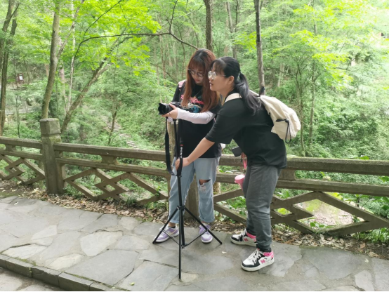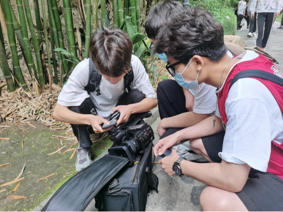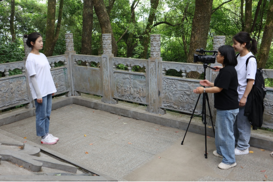 在为期三天的外出实训中,学生们在老师的带领下深入镜儿湖、莲花池、驾云桥、玉皇阁、三清殿、千福鼎等景点进行实地拍摄,分别从自然景观、人文景观、历史景观等多个角度对作品进行剧本架构与镜头拍摄。每天专业实践任务明确,指导老师对各组作品进行及时跟进、反馈与建议,小组同学通过与老师们的反复交流沟通,进一步完善作品。小组内氛围热烈、秩序井然,组内成员积极查找资料,采访调查,编写剧本,参与拍摄,发挥创意,相互交流,彼此提出意见,在实践中修改进步。
