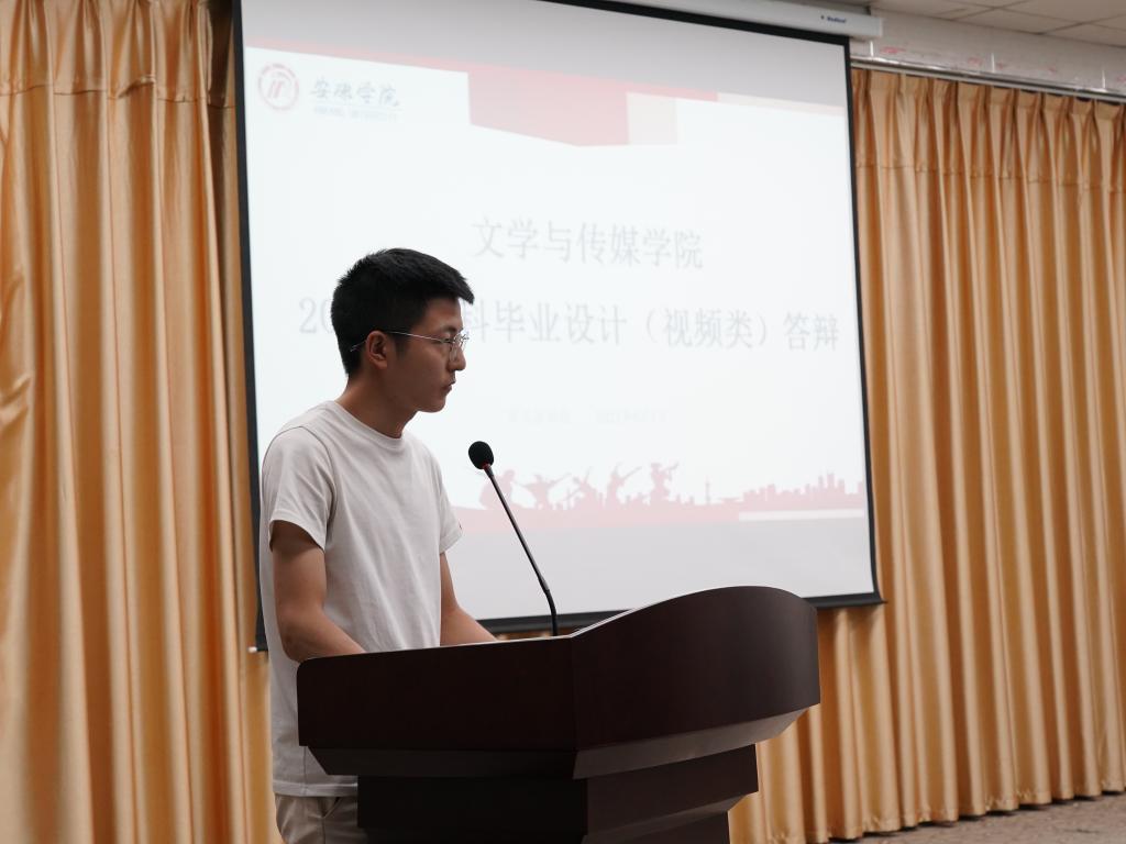 按照答辩要求,参与答辩的8位同学分成4组分别就毕业设计的选题意义、作品内容、创作思路、团队分工、创新与不足等情况进行介绍并现场展示视频作品。