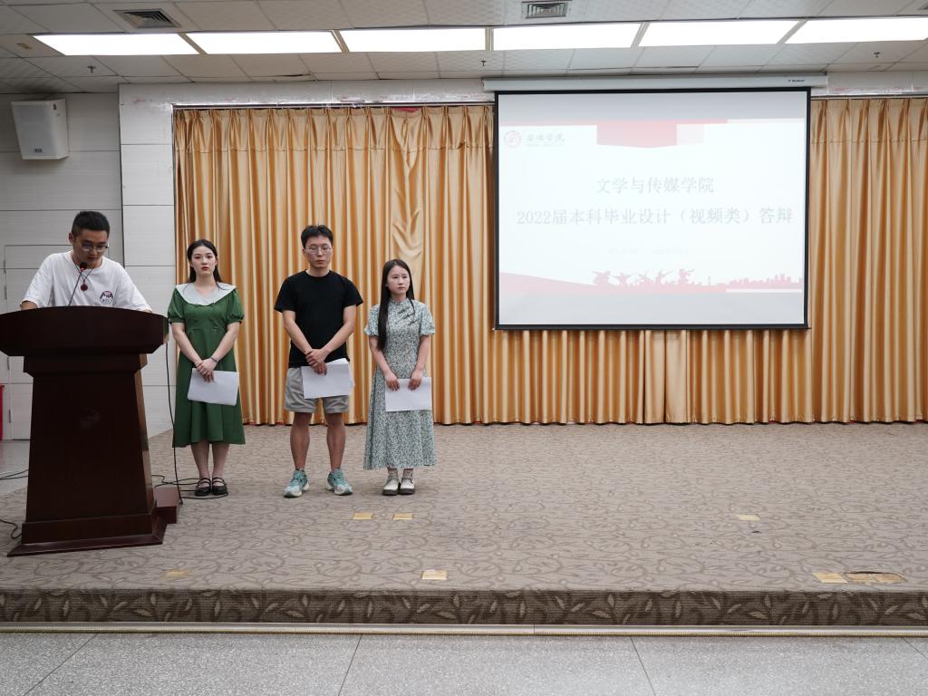2022年6月1日19时,伟德国际victor·1946源自2022届本科毕业设计(视频类)答辩会在江南校区图书馆报告厅举行。本次答辩会特邀安康电视台公共频道总监白堇同网络与新媒体专业教师谭诗民、王薇薇一起担任答辩评委,共有8位学生参加答辩。答辩会由答辩组秘书鲁雨溦主持,文传学院院长杨运庚、党总支副书记杨海蓉、副院长李婷、网络与新媒体专业任课教师以及网络与新媒体专业2019—2021级学生到场观看。