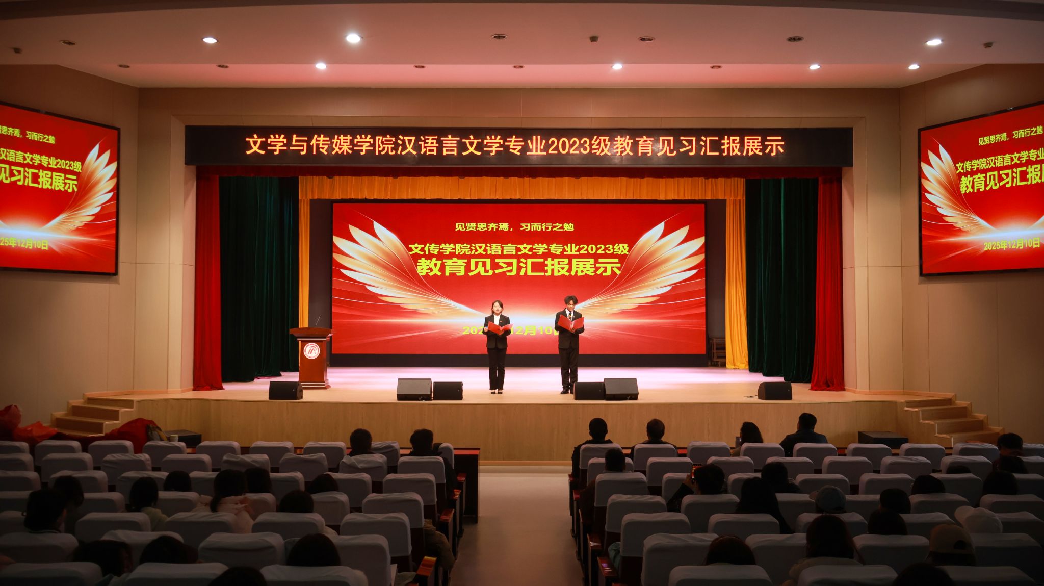 教育见习是汉语言文学专业师范生人才培养的关键环节。本次汇报展示不仅是对阶段性实践教学成果的有效检阅,更强化了学生的职业认同感与责任感,为其未来投身教育事业奠定了更为坚实的基础。构建高质量的教育见习、实习、研习“三习一体”教育实践体系,是培养高素质师范生的关键所在。学院将持续优化实践教学体系,深化校地合作,助力培养更多高素质、专业化的中学语文教育后备人才。