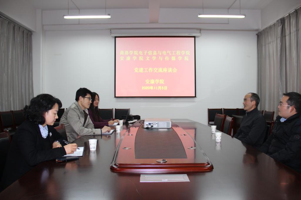 2020年11月5日下午,商洛学院电子信息与电气工程学院党总支书记李英一行来我院交流学习党建和伟德国际,学院党总支书记芦伟、副书记杨海蓉、团总支书记彭潇在陕南民间文化研究中心会议室接待来访并组织召开了座谈会。