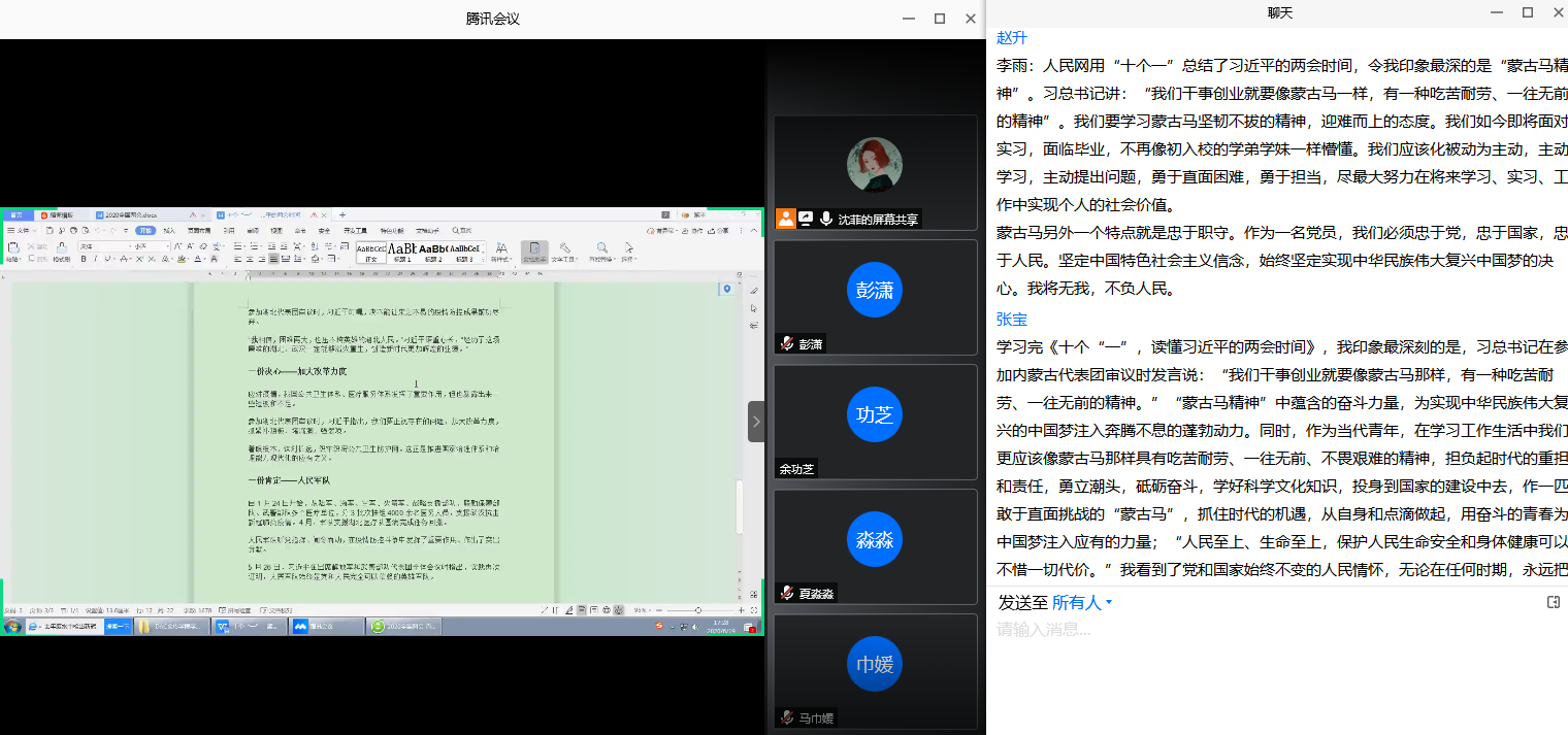 为深入贯彻落实“两会”精神,引导青年党员筑牢思想地基,巩固自身理论知识基础,自觉承担时代历史使命,树立学生党员优良作风,2020年6月19日17:00,伟德国际victor·1946源自学生第一党支部、第二党支部依托腾讯会议APP联合举办了“学习两会精神,争做时代青年”线上主题党日活动。支部全体党员参加了本次活动,活动由学生第二党支部书记沈菲主持。