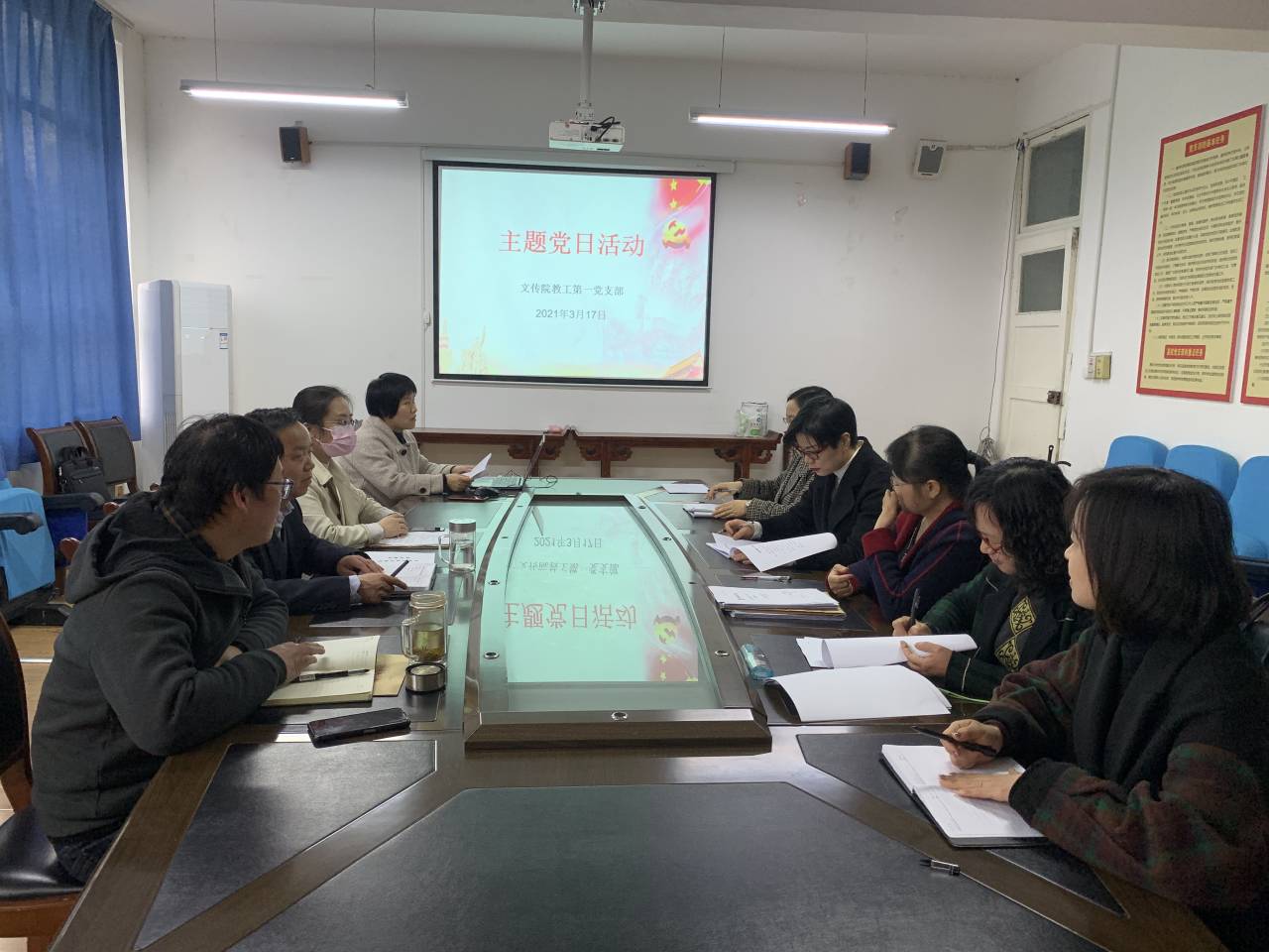 3月17日下午4点,文传学院教工一支部全体党员在2307教室举行了新学期第一次主题党日活动。活动由一支部书记韩文霞同志主持并主讲。