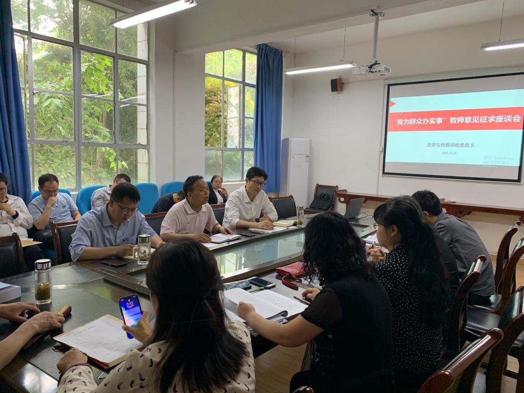 5月12日下午,文传学院在2307召开党史学习教育“我为群众办实事”教师意见征求座谈会,座谈会由文传学院党总支书记芦伟主持。