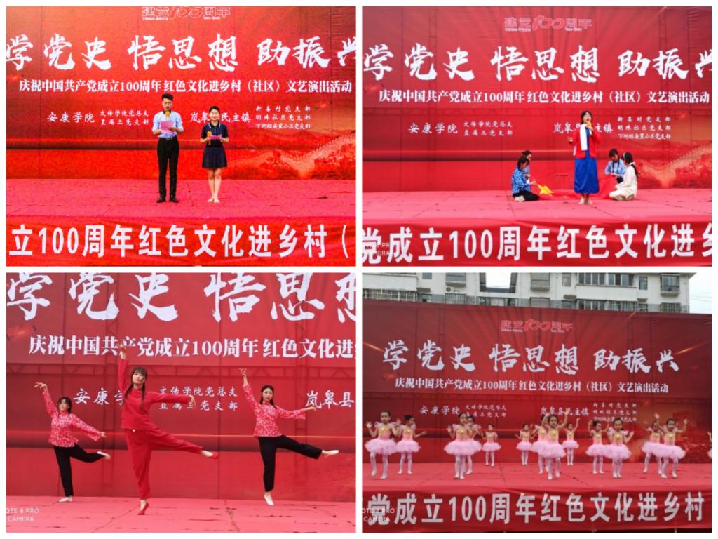 为扎实推进党史学习教育走深走实,6月1日下午,文传学院党总支与直属三党支部把党史学习教育与助力乡村振兴相结合,进一步发挥社团活动优势,传承革命精神,带领支部10余名党员和学生文艺演出团队前往学校帮扶的岚皋县民主镇新喜村,开展了庆祝建党百年“学党史 悟思想 助振兴”红色文化进乡村文艺演出活动。