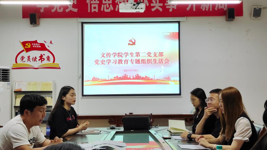 7月8日,文传学院学生第二党支部在江南校区2370会议室组织开展了党史学习教育专题组织生活会,支部全体党员参加会议(应到会30人,实到会30人),会议由支部书记薛涛主持。
