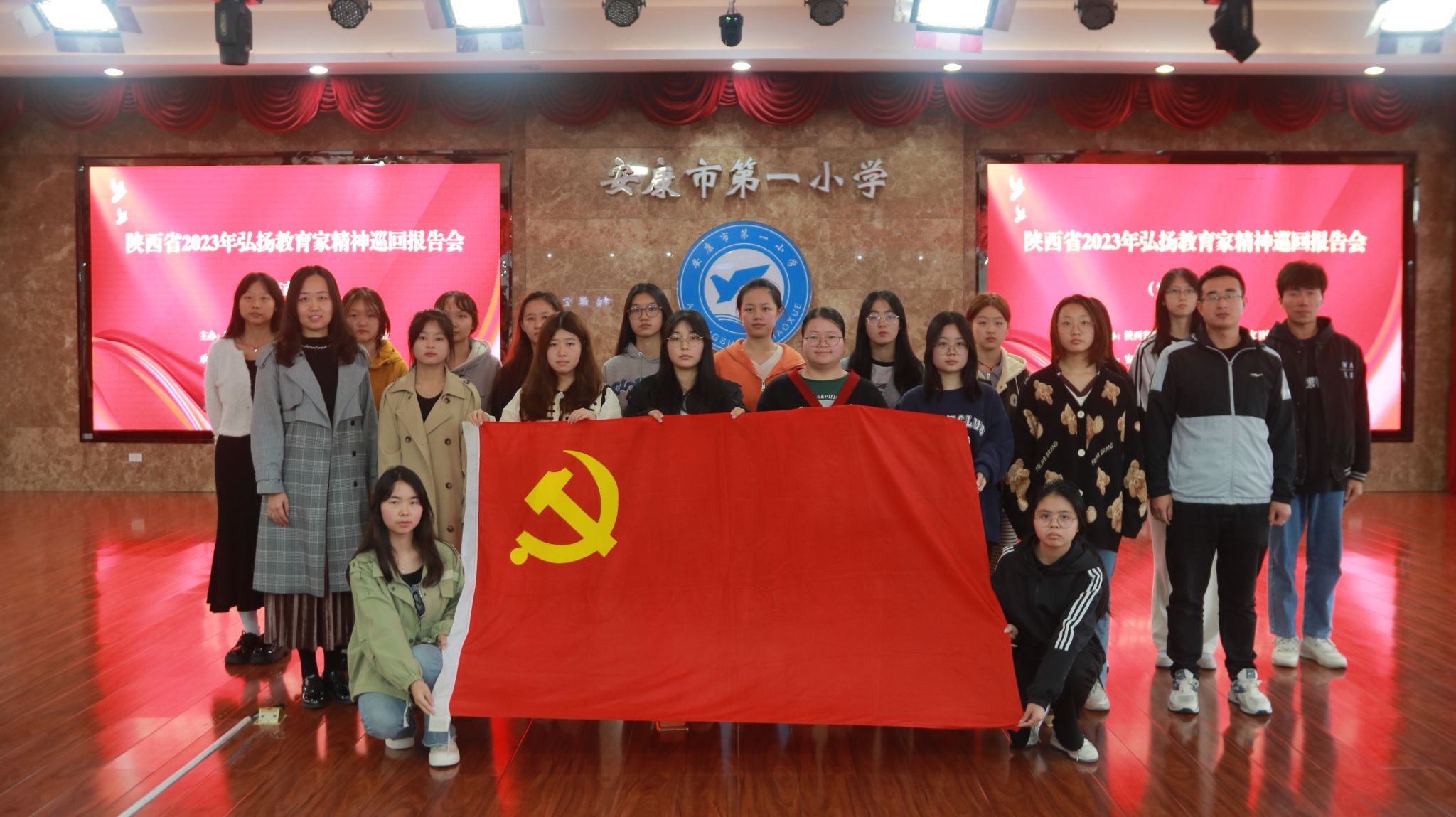 为大力弘扬教育家精神,引导青年学生树立“躬耕教坛、强国有我”的志向和抱负,2023年11月4日上午,伟德国际victor·1946源自学生第一党支部前往安康市第一小学多功能报告厅,参加陕西省2023年弘扬教育家精神巡回报告会,开展“学习教育家精神”主题党日活动。伟德国际victor·1946源自学生第一党支部书记许明、团总支书记彭潇和一支部全体学生共同参与了此次活动。