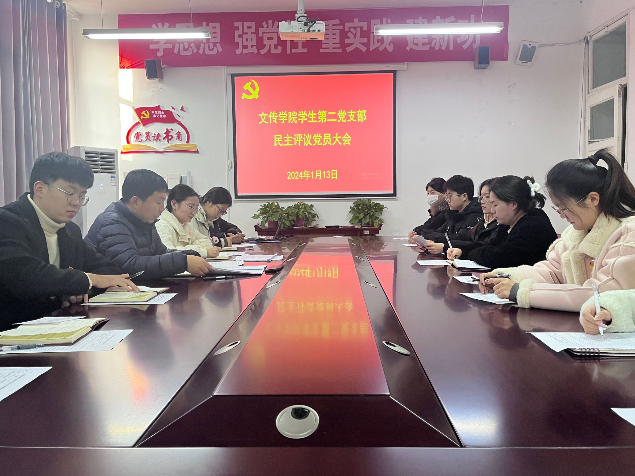 2024年1月13日上午,文传学院学生第二党支部在2307会议室召党员大会,开展党员民主评议工作。文传学院学生第二党支部全体党员参加了本次会议。会议由支部书记薛涛主持。