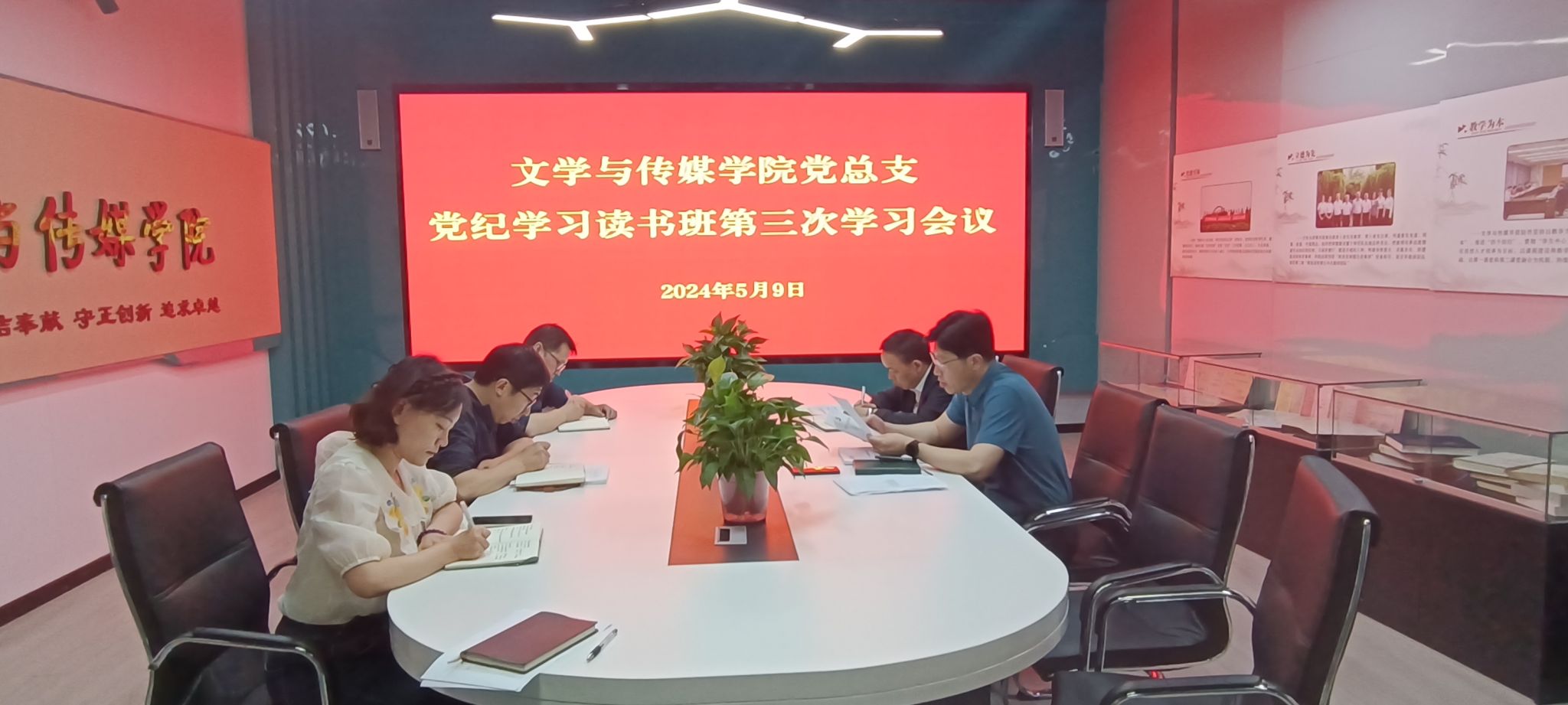 5月9日上午,文传学院党总支在多功能室召开了党纪学习教育读书班第三次学习会议,文传学院领导班子成员、党总支委员参加了此次学习会议,会议由党总支书记芦伟主持。