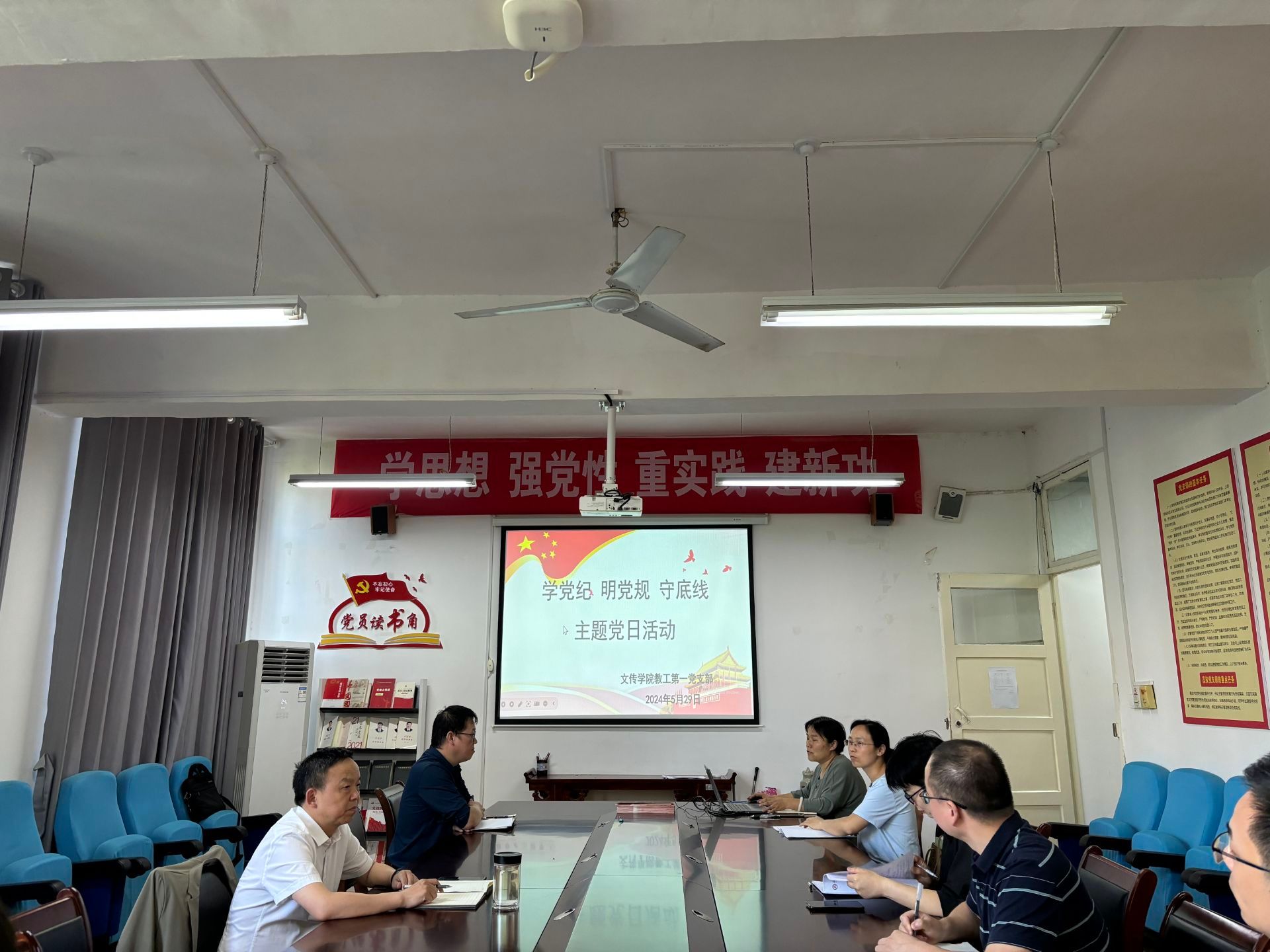 为深入贯彻习近平总书记关于党纪学习教育的重要讲话和重要指示精神,积极落实开展党纪学习教育的工作方案529午,文传学院教工第一支部组织全体党员开展“学党纪、明党规、守底线”月主题党日活动由支部书记韩文霞主持。