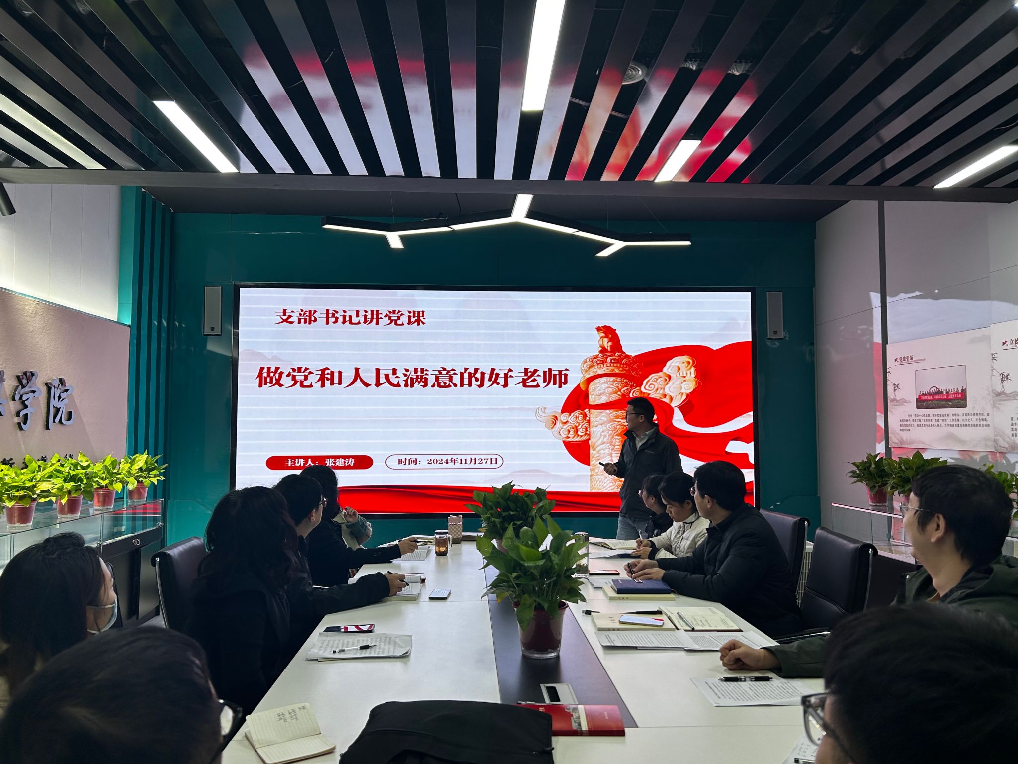 11月27日,伟德国际victor·1946源自教工第二党支部在一阵热烈而庄重的气氛中,开展了主题为“做党和人民满意的好老师”的支部书记讲党课活动。本次活动由支部书记张建涛主讲,全体支部党员教师积极参与,共同探讨了如何成为一名党和人民满意的好老师。
