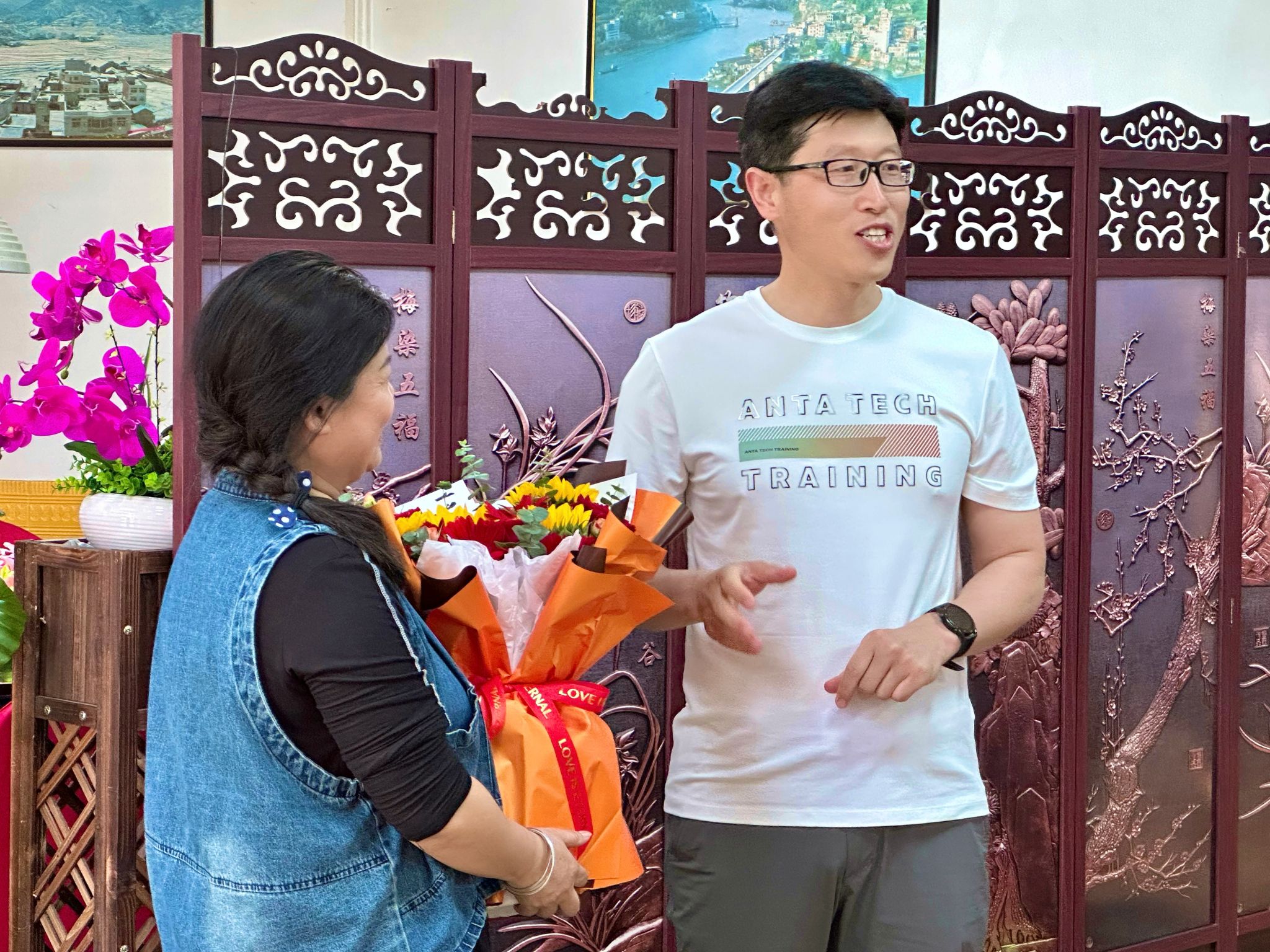 参观结束后,工会文传学院分会举行了艾全霞老师荣退会,党总支书记芦伟代表学院为艾老师献上了鲜花,并对其长久以来工作上的付出致以衷心的感谢和崇高的敬意,艾老师在退休感言中回望了自己的职业生涯,并对学校、学院给予的关心、包容和帮助表达了衷心感谢,由衷对文传学院这个温暖大家庭的留恋与不舍之情。