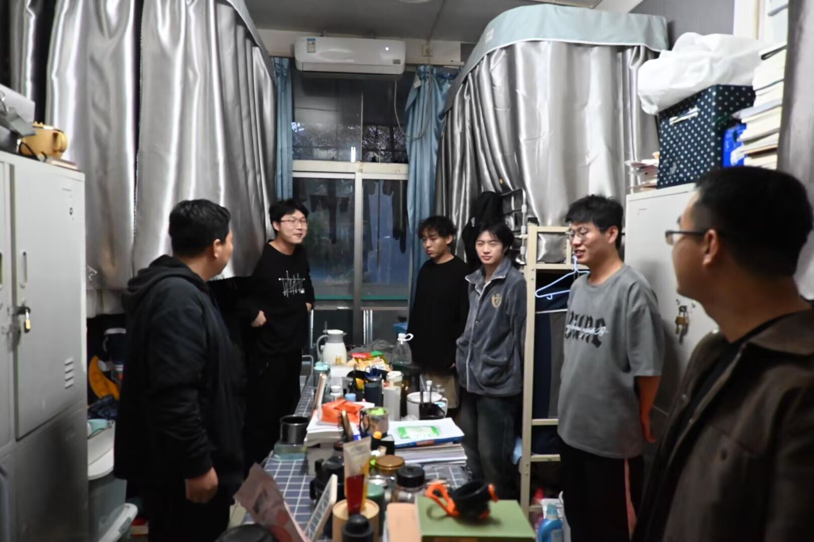 在检查过程中,老师们询问了解同学们的学习生活情况,希望同学们以审核评估为契机,以评促建,积极展现良好的精神风貌和宿舍文化。同学们对老师的关心表示感谢,并表示会积极配合学院做好宿舍卫生和安全工作。