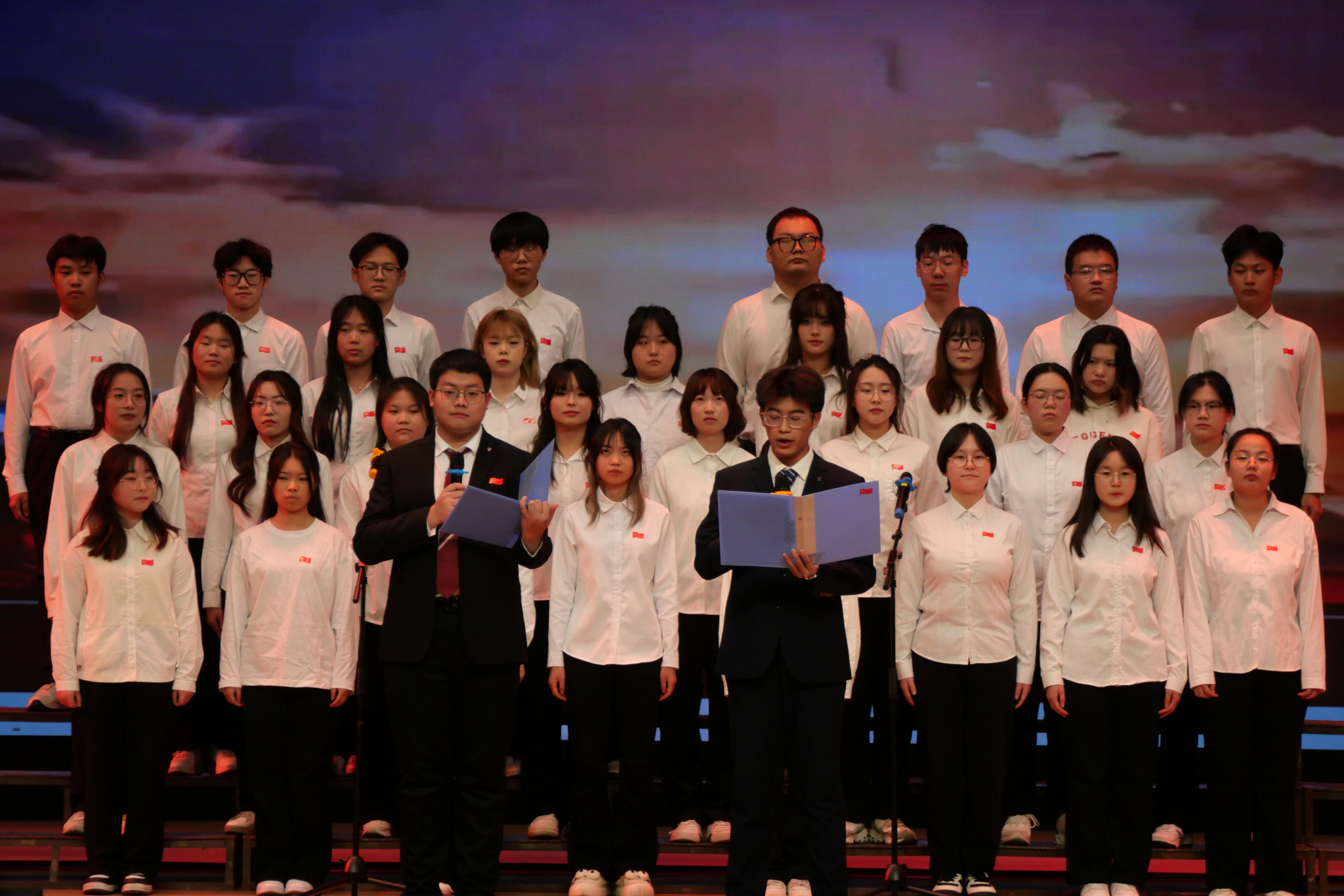 12月15日晚,伟德国际victor·1946源自在江南校区大礼堂成功举办了主题为“红歌激扬,青春向党”的合唱比赛。此次活动旨在通过红歌传唱,激发学生的爱党爱国情怀,增强集体凝聚力,展现新时代青年的精神风貌。学院1-3年级25个班级全部参赛,李祉怡、李炫烨主持。校团委组织宣传部部长沙薇、学院党总支副书记杨海蓉及院全体辅导员担任本次合唱比赛评委。