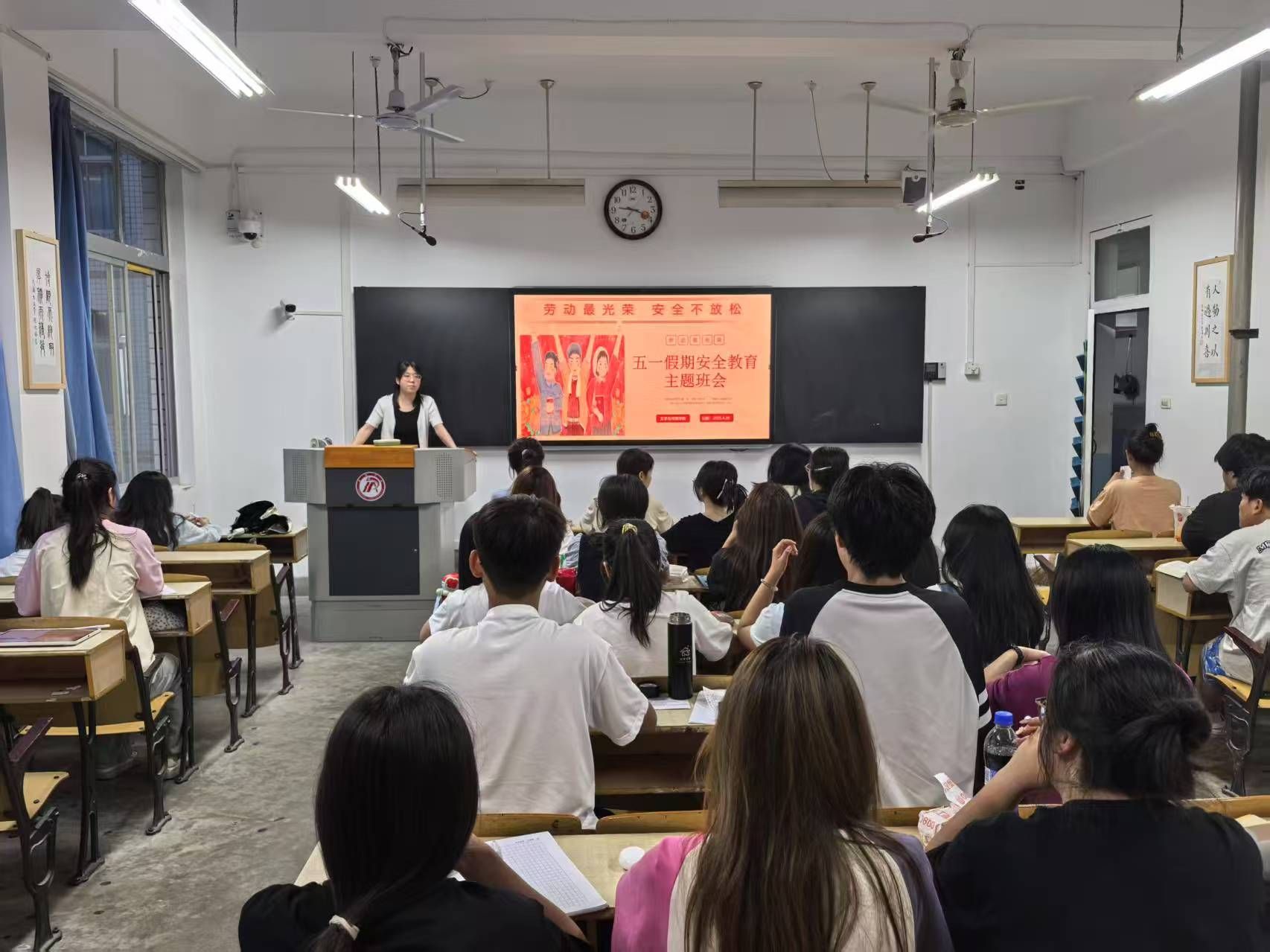 五一劳动节假期将至,为切实保障学生安全,维护校园和谐稳定,文传学院近期组织全院各班级召开安全教育主题班会,以“全覆盖、零遗漏”的形式,围绕国家安全、人身财产安全、交通出行安全等多项重点领域,系统普及安全防范知识,为学子平安假期保驾护航。