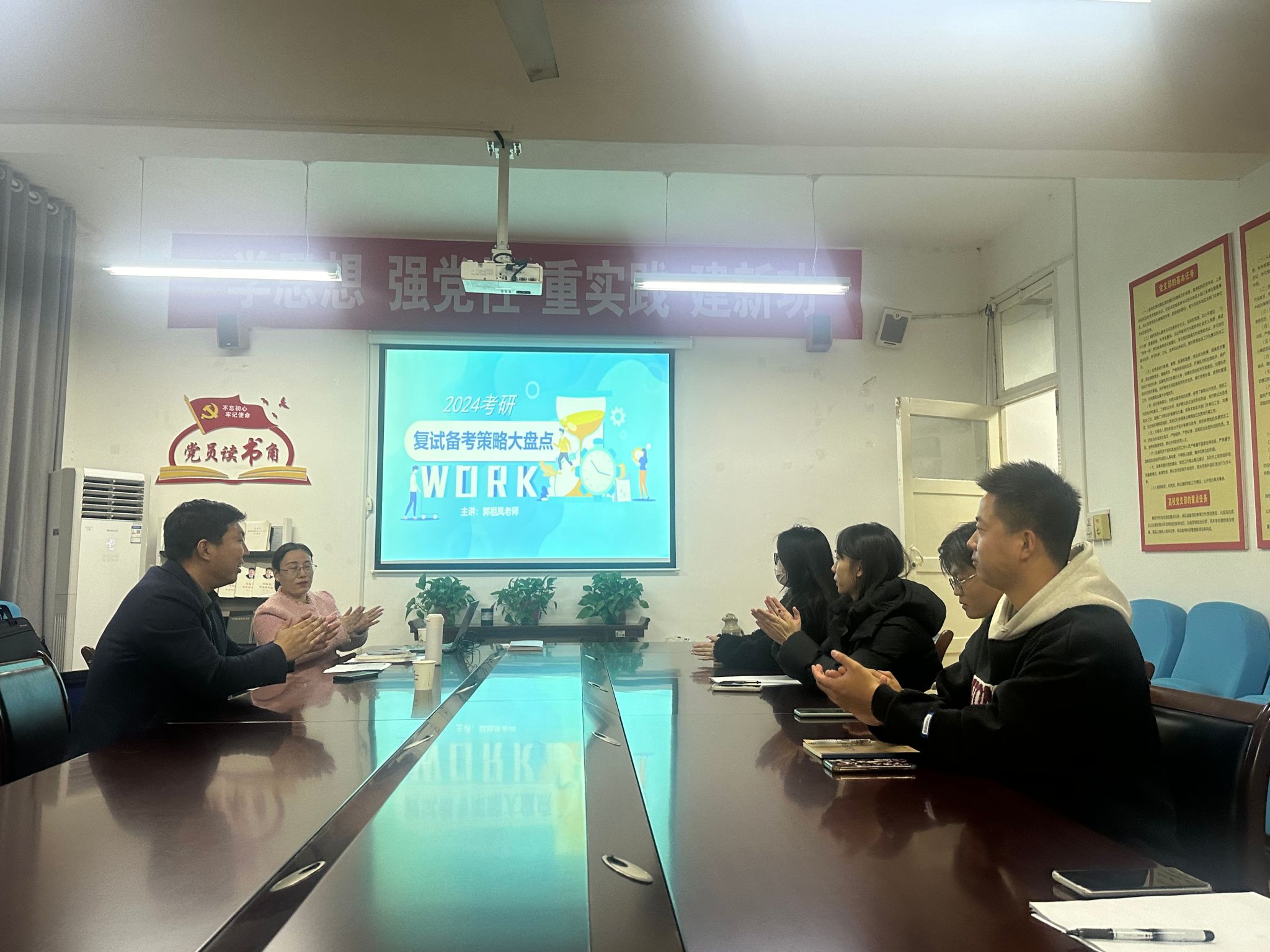 3月9日,文传学院联合学校就业处组织开展2024届考研学生复试指导讲座本次讲座旨在为即将参加考研复试的学生提供专业的指导和建议,帮助他们更好地准备复试,提高录取率。本次讲座特邀马克思主义学院郭祖凤老师担任主讲嘉宾,文传学院2024届考研学生参会,文传学院学工办主任薛涛主持。