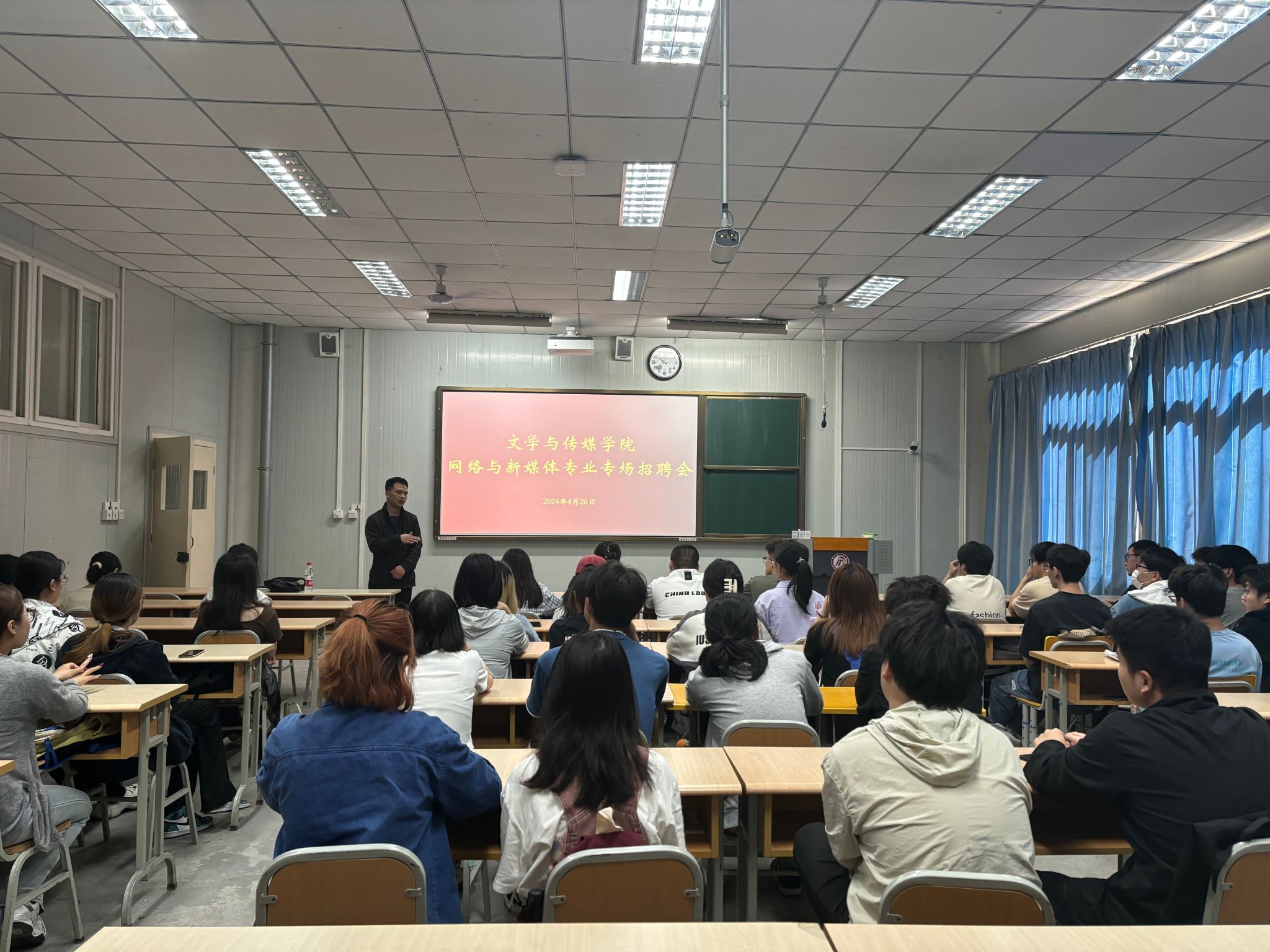 为认真贯彻落实中省、学校2024年就业工作会议精神,进一步推进我院毕业生高质量充分就业,有针对性地满足用人单位对人才的需求,加强学院、毕业生、用人单位之间的交流和沟通,我院于2024年4月26日上午10点在1023教室举办2024届网络与新媒体专业专场招聘会。本次招聘单位为安康多视角影视文化传媒有限公司。就业办主任薛涛,网络与新媒体专业2024届毕业生参加了本次专场招聘活动。