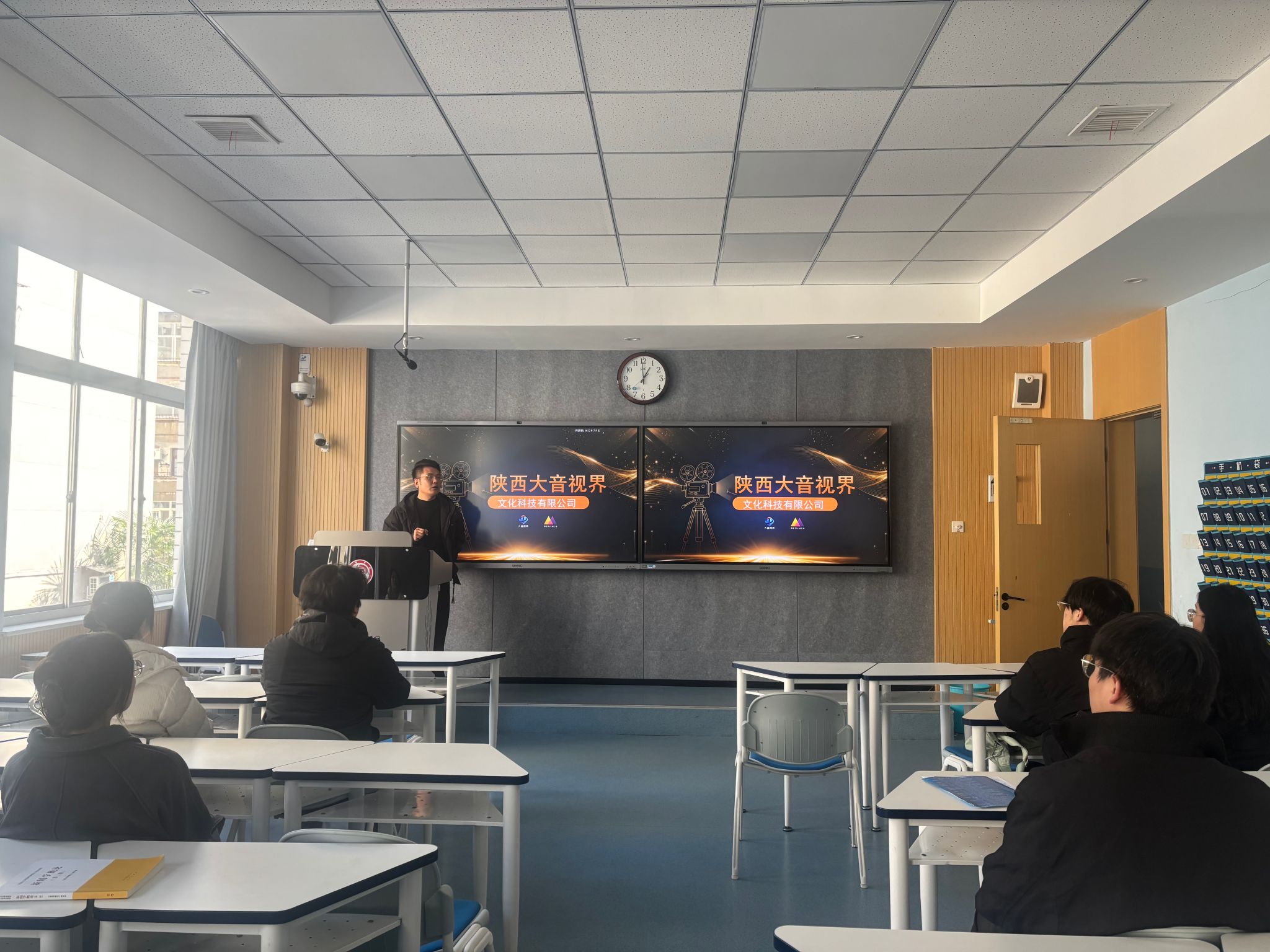 2025年11月21日,陕西大音文化科技有限公司来我院开展2026届毕业生校园招聘宣讲会。我院积极组织2026届毕业班学生参加,宣讲会由学院就业创业办公室主任薛涛主持。