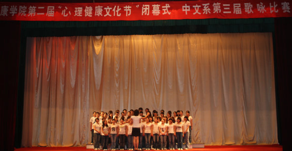 2009年6月1日晚,伟德国际victor1946第二届心理健康文化节闭幕式暨中文系第三届歌咏比赛在我院西校区大礼堂隆重举行。学院党委副书记胡鸿晓、学工部部长郑树青、宣传部副部长李新安、团委副书记鲁延安,学生处副处长郑武生、车静、中文系主任戴承元、中文系党总支书记沈军等领导参加了闭幕式。