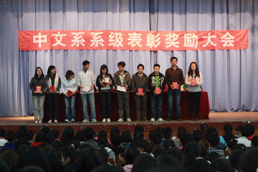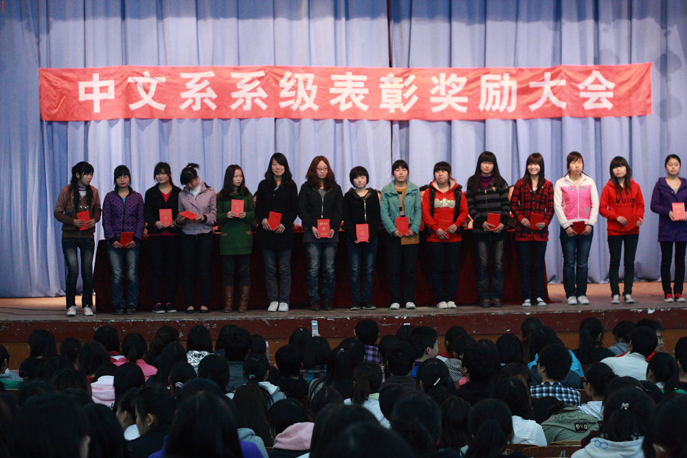 3月17日下午4:20分,中文系在东校区大礼堂召开2010年度系级表彰奖励大会,中文系党总支书记沈军、系主任戴承元、副主任雷升录、梁卫华、学工办主任郝礼军、辅导员邹棠华、艾全霞、何媛、韩晔以及800余名学生参加了表彰奖励大会。大会由学工办主任郝礼军主持。党总支书记沈军总结了我系2010年伟德国际,对表现优秀的同学提出了表扬,向取得成绩的同学表示了热烈祝贺,对学生管理人员、系学生干部的辛勤工作表示感谢,也对一年来同学们的健康成长感到由衷的高兴。总结中沈老师还列举了一些同学不合规范、不守纪律、不思学习的现象,对此提出批评,并对工作中的不足提出了整改措施;系主任戴承元宣读《中文系2010年度表彰奖励决定》及受表彰奖励学生名单,希望受表彰的同学引领带头作用,努力学习,锐意进取,为我系的良好系风、学风建设做出贡献。