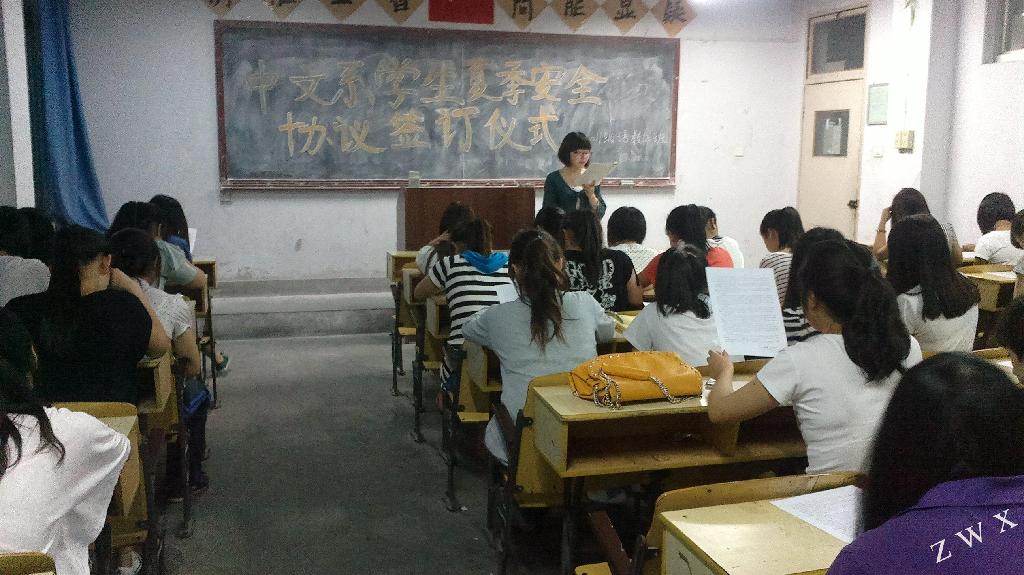 为配合学院夏季安全管理,中文系积极行动,2012年6月3日晚8:00,全系学生在相应教室签订夏季安全管理协议书。