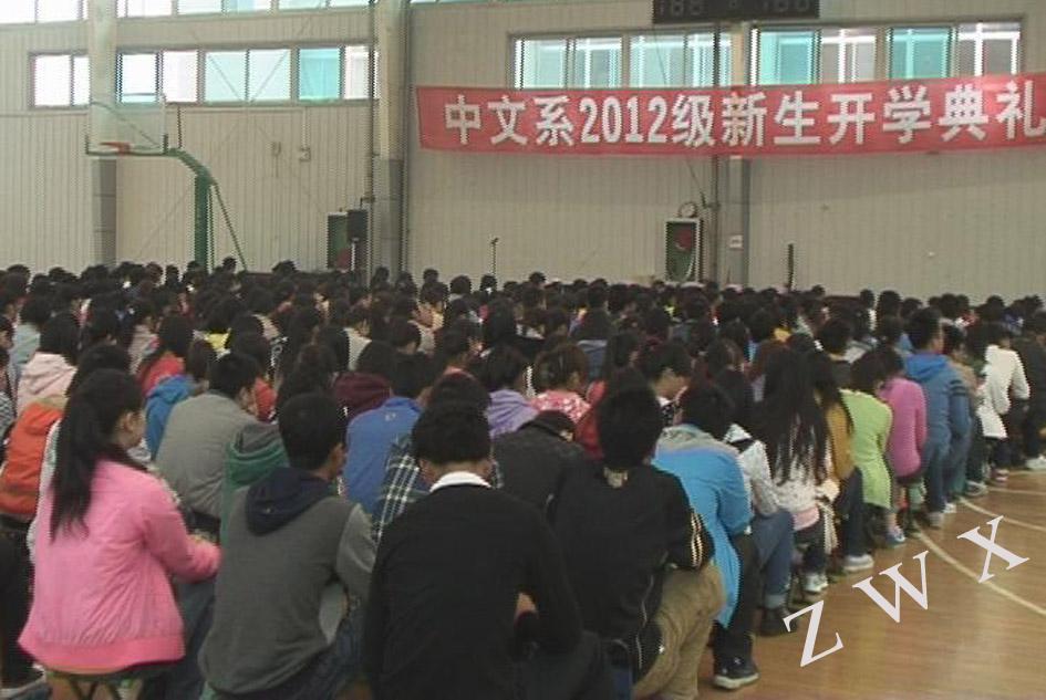 2012年10月11日上午,伟德国际victor1946中文系在学校体育馆二楼隆重举行2012级新生开学典礼。中文系主任戴承元、党总支书记李岩、副主任梁卫华、杨运庚、著名作家李春平、学工办主任郝礼军、辅导员艾全霞、沈菲及485名新生出席了开学典礼。开学典礼由副主任梁卫华主持。