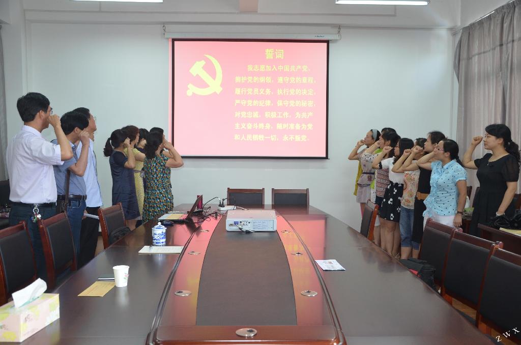 首先,大家面对党旗,庄严宣誓,再次重温入党誓词。大家表示,一定不忘党的宗旨,认真教书育人,切实做好本职工作,为学校的改革与发展发挥党员教师的先锋模范作用。