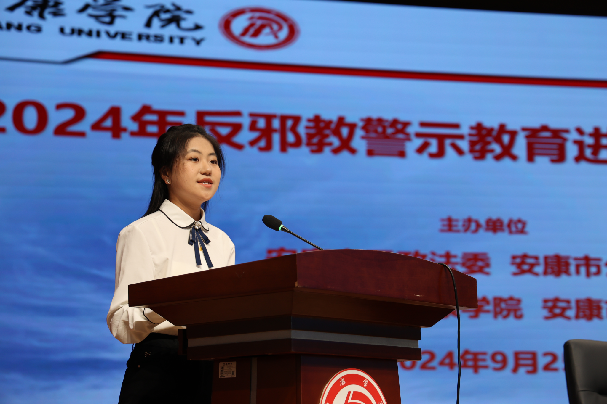 活动现场,学校通过发放宣传手册、组织观看反邪教宣传片、听取主题讲座、集体签订安全责任书等形式,向学生们详细介绍了邪教的本质、特征和危害。讲座上,来自安康市公安局的警官结合实际案例,深入浅出地讲解了邪教对个人、家庭和社会的严重危害,让学生们深刻认识了到邪教的欺骗性和危害性。活动中,李若辰代表2024级新生发言,号召同学们人人尽责,从自身做起,崇尚科学,反对邪教,倡导健康文明的生活方式。