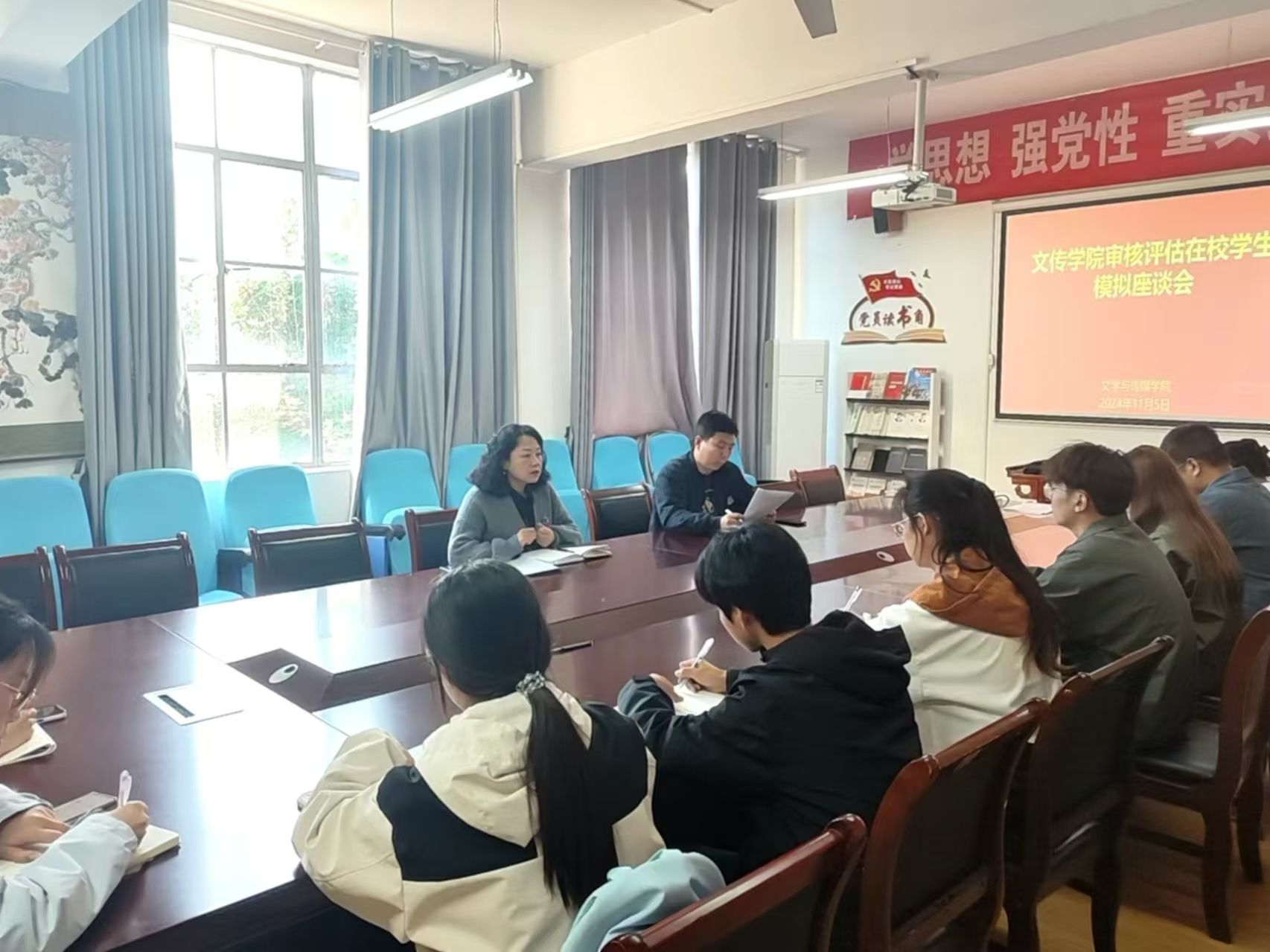 学校本科教育教学审核评估准备工作进入冲刺阶段,为进一步营造良好迎评氛围,加强在校学生对审核评估工作的认知和理解,11月5日下午,文传学院在2307会议室组织开展审核评估在校学生座谈会。学院党总支副书记杨海蓉、学工办主任薛涛及各班学生代表参加本次座谈会。会议由薛涛主持。