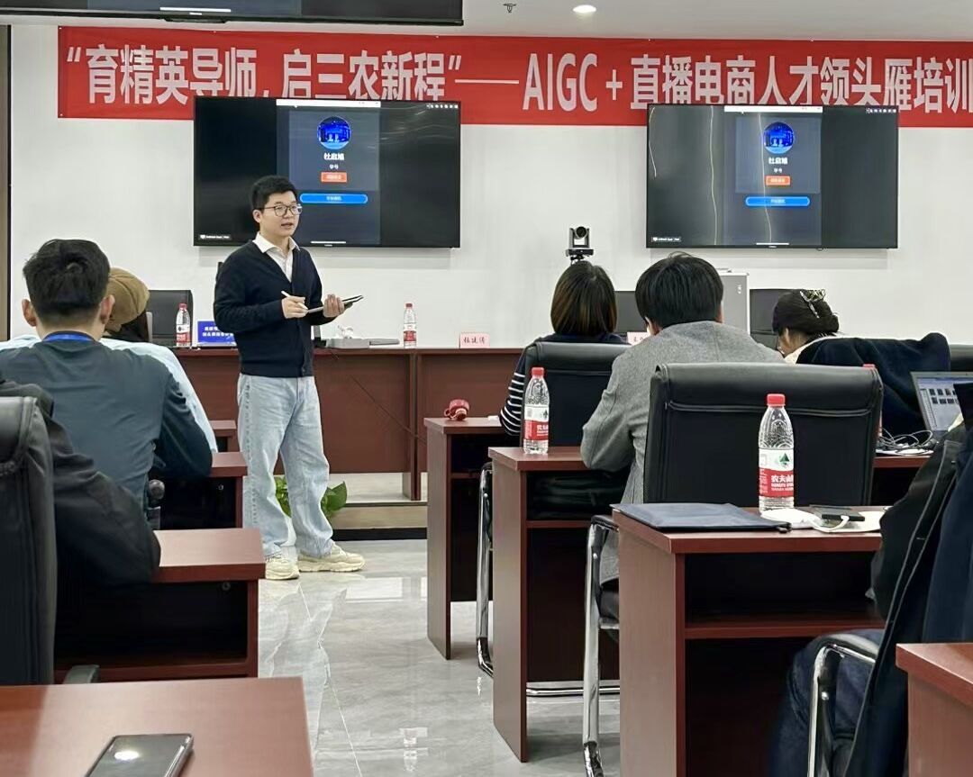 近日,我院网络与新媒体专业教师张建涛博士,作为特聘专家讲师,于11月7日至11月9日,在山东AIGC产业创新中心开展了“育精英导师,启三农新程”——AIGC+直播电商人才领头雁培训班系列授课活动。
