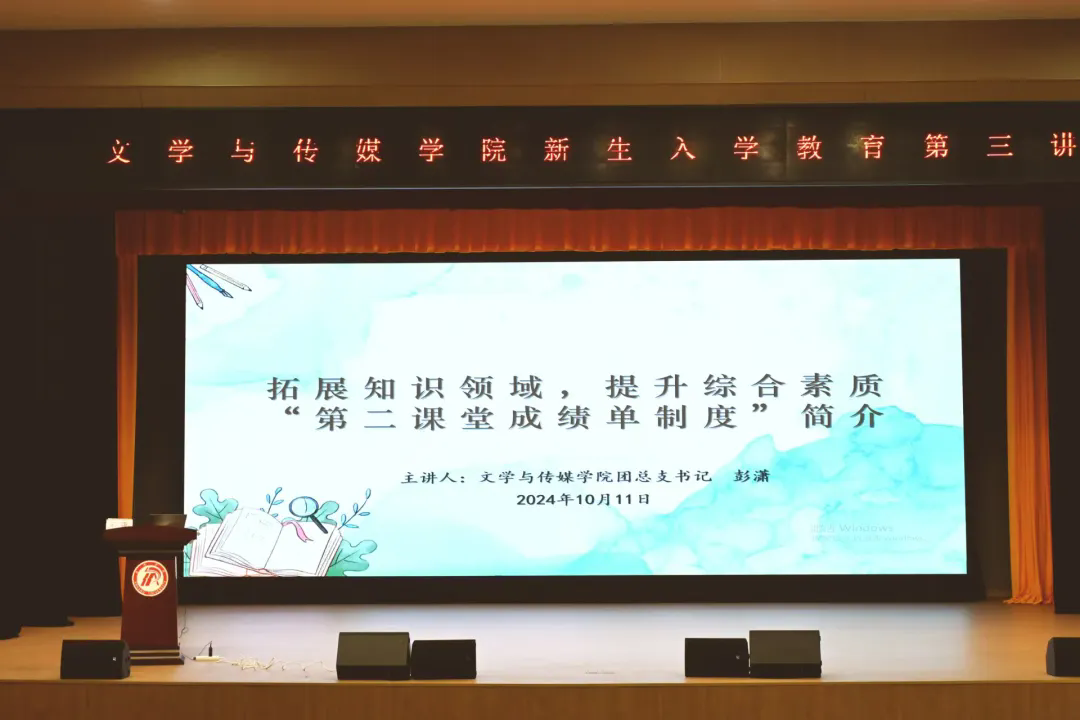 为全面提高新生综合素质,以完备、科学的“第二课堂成绩单”制度体系提升第二课堂育人实效,2024年10月11日下午,伟德国际victor·1946源自在江南校区大礼堂开展新生入学教育第三讲:拓展知识领域,提升综合素质——“第二课堂成绩单制度”简介。我院团总支书记彭潇主讲,辅导员喻言、刘言军和2024级全体同学参加,会议由刘言军主持。