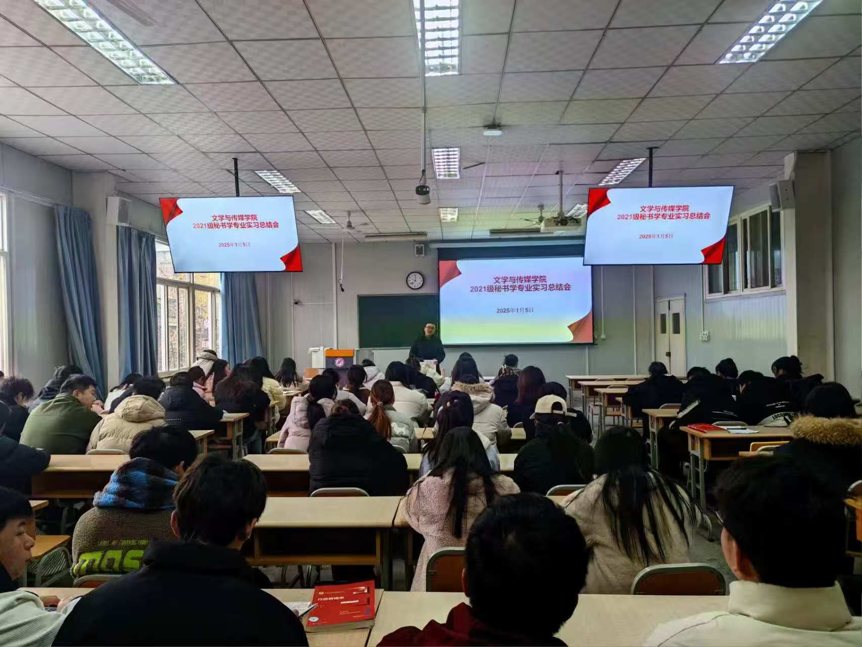 2025年1月5日,伟德国际victor·1946源自在1026教室召开秘书学专业实习总结会,副院长朱云、实习带队教师胡少山以及2021级、2022级秘书学专业学生参会,会议由实习生李欣窈主持。