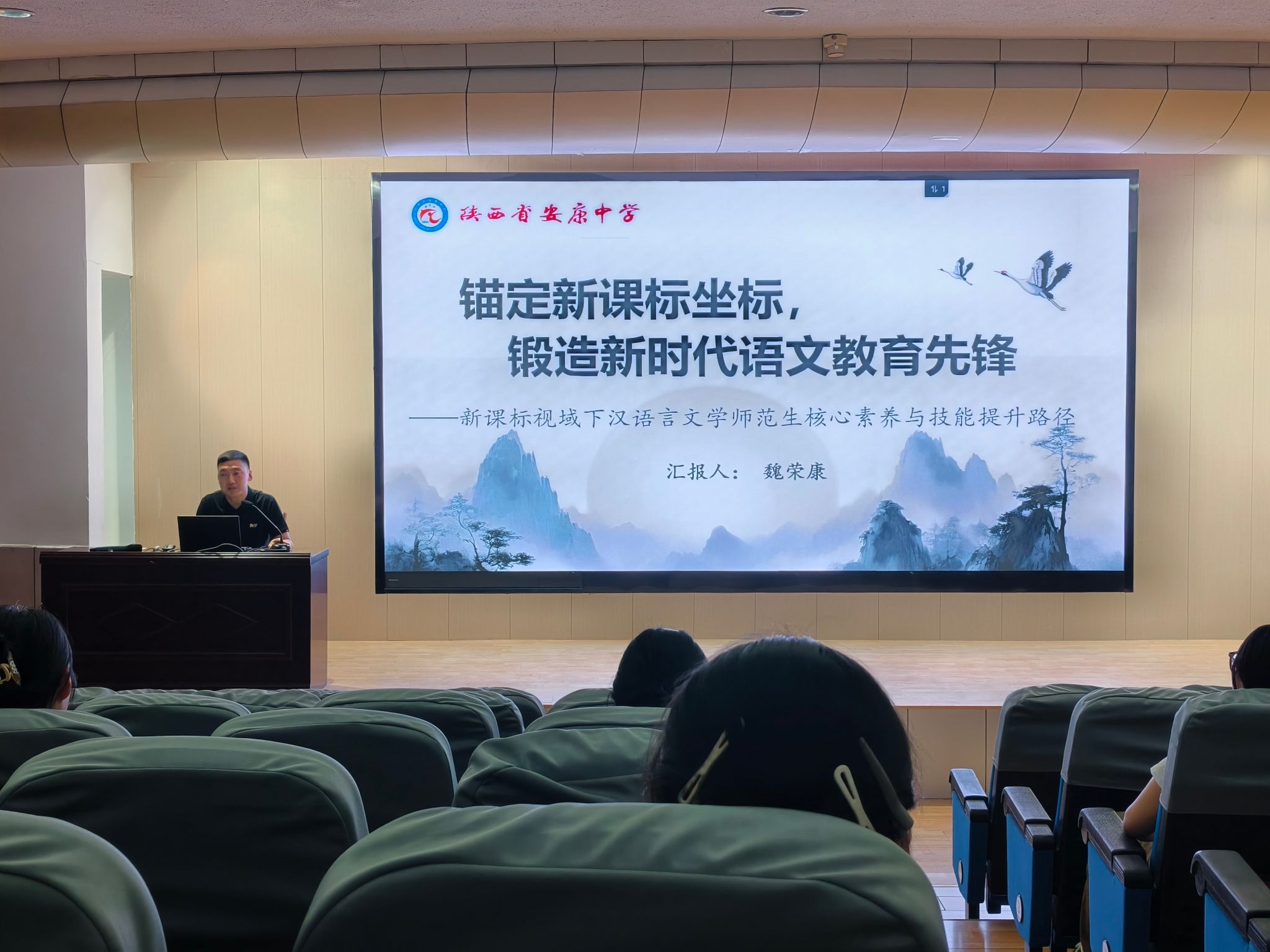 为助力汉语言文学师范生适应新课标要求,提升教育教学能力,5月7日伟德国际victor·1946源自在江南校区一号楼报告厅举办了题为"新课标视域下汉语言文学师范生核心素养与技能提升路径"的专题讲座。本次活动邀请安康中学魏荣康老师主讲,汉语言文学系主任谭诗民博士主持,2022级全体师范生现场听取了报告。