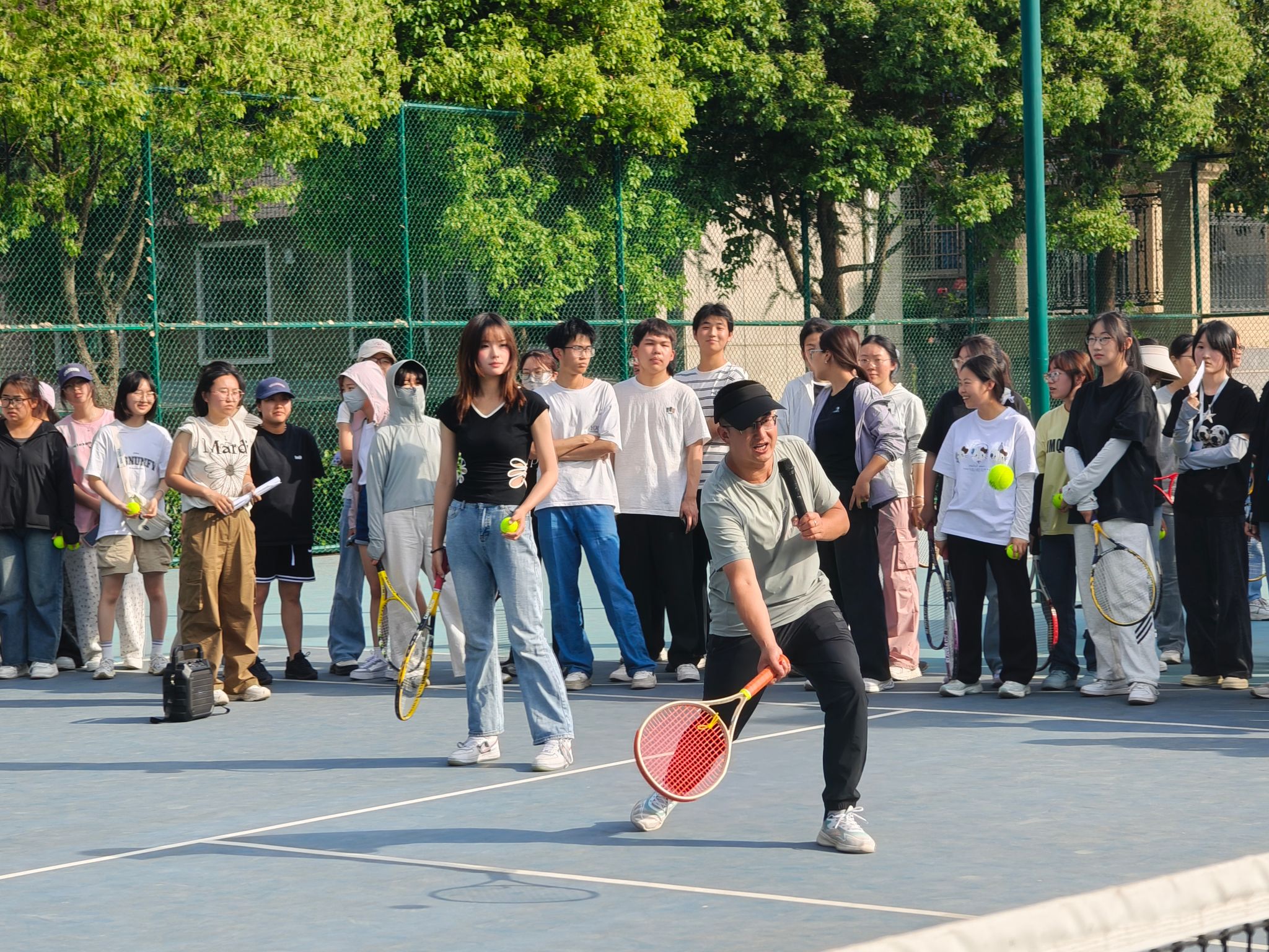 活动伊始,许明老师为同学们详细介绍了网球运动的起源、发展和传播历程。随后,带领全体参与者进行了专业的热身运动,确保活动安全开展。在专业教学环节,许明老师从握拍方式、挥拍轨迹、站位调整到力道控制等方面进行了系统讲解。同学们在老师指导下初次尝试网球运动,动作虽然略显生疏,但都表现出了浓厚的学习兴趣。正式活动分为三个特色环节:一是“解压投掷,一击入心”;二是小场双人对拉淘汰赛;三是“颠球接力”,活动现场气氛非凡,欢呼声此起彼伏。参与学生纷纷表示,此次活动不仅让他们体验了网球运动的乐趣,更有效缓解了心理压力,增强了同学们之间的交流与合作。