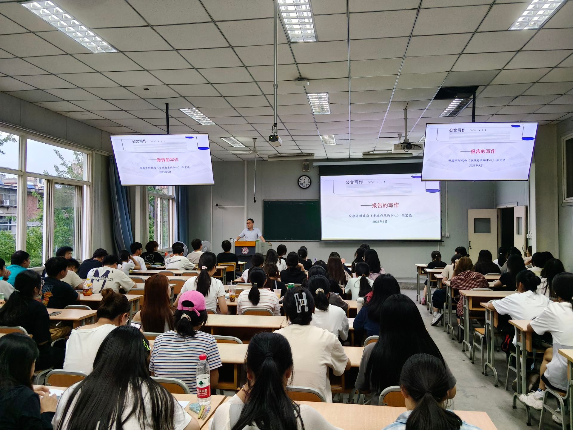 按照《应用文写作》“双师”课程教学计划,伟德国际victor·1946源自于4月9日、4月18日、5月20日、6月3日邀请行业专家安康市政府采购中心张宏亮,为汉语言文学2024级1、2、5班学生分四次讲授了请示、批复、报告、函、纪要等公文和申论写作的技巧,校内任课教师胡少山随堂听课。