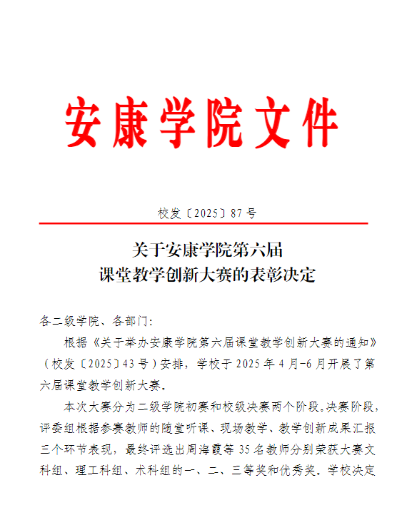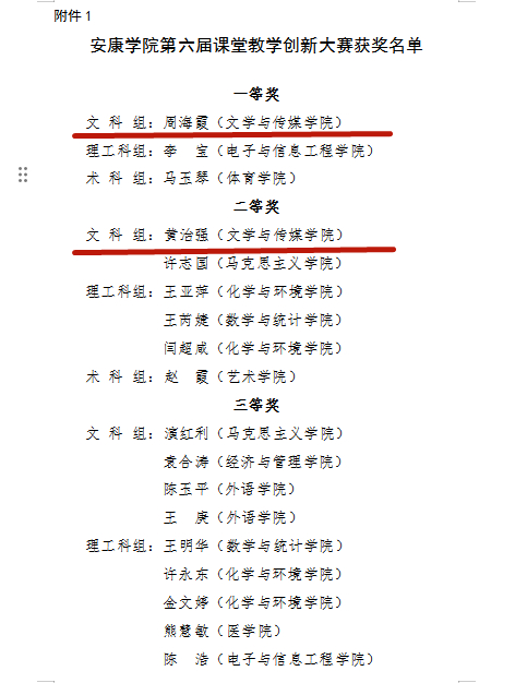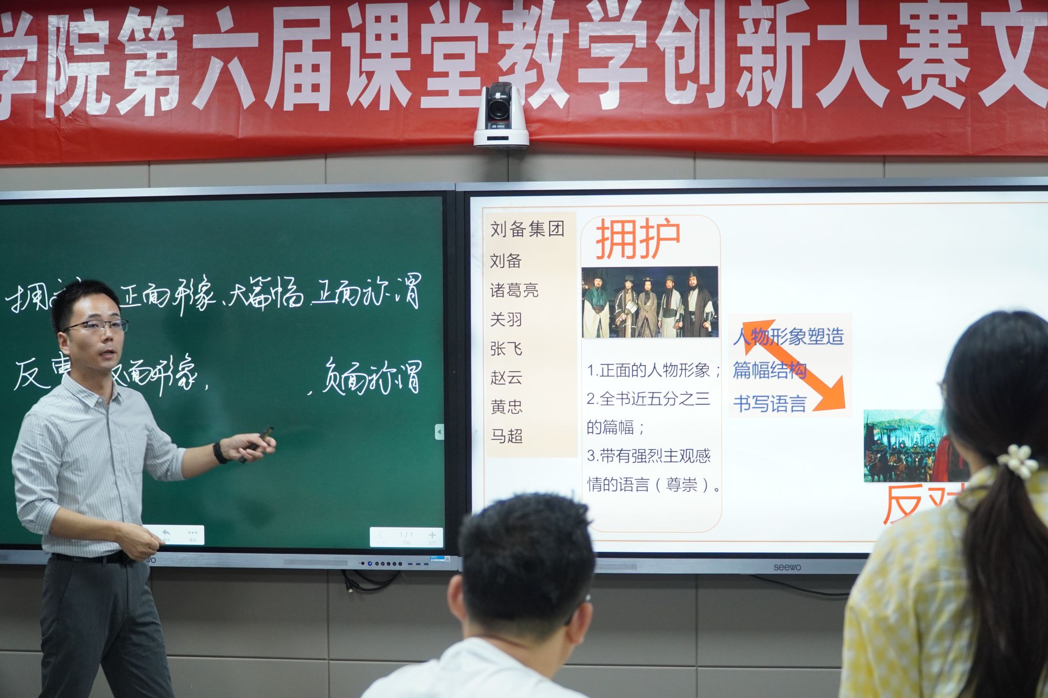 近日,学校第六届课堂教学创新大赛决赛在师范生职业技能训练中心举办。经过激烈角逐,文传学院参赛教师周海霞荣获文科组一等奖、黄治强荣获文科组二等奖、刘锦荣获文科组优秀奖,文传学院则获优秀组织奖。