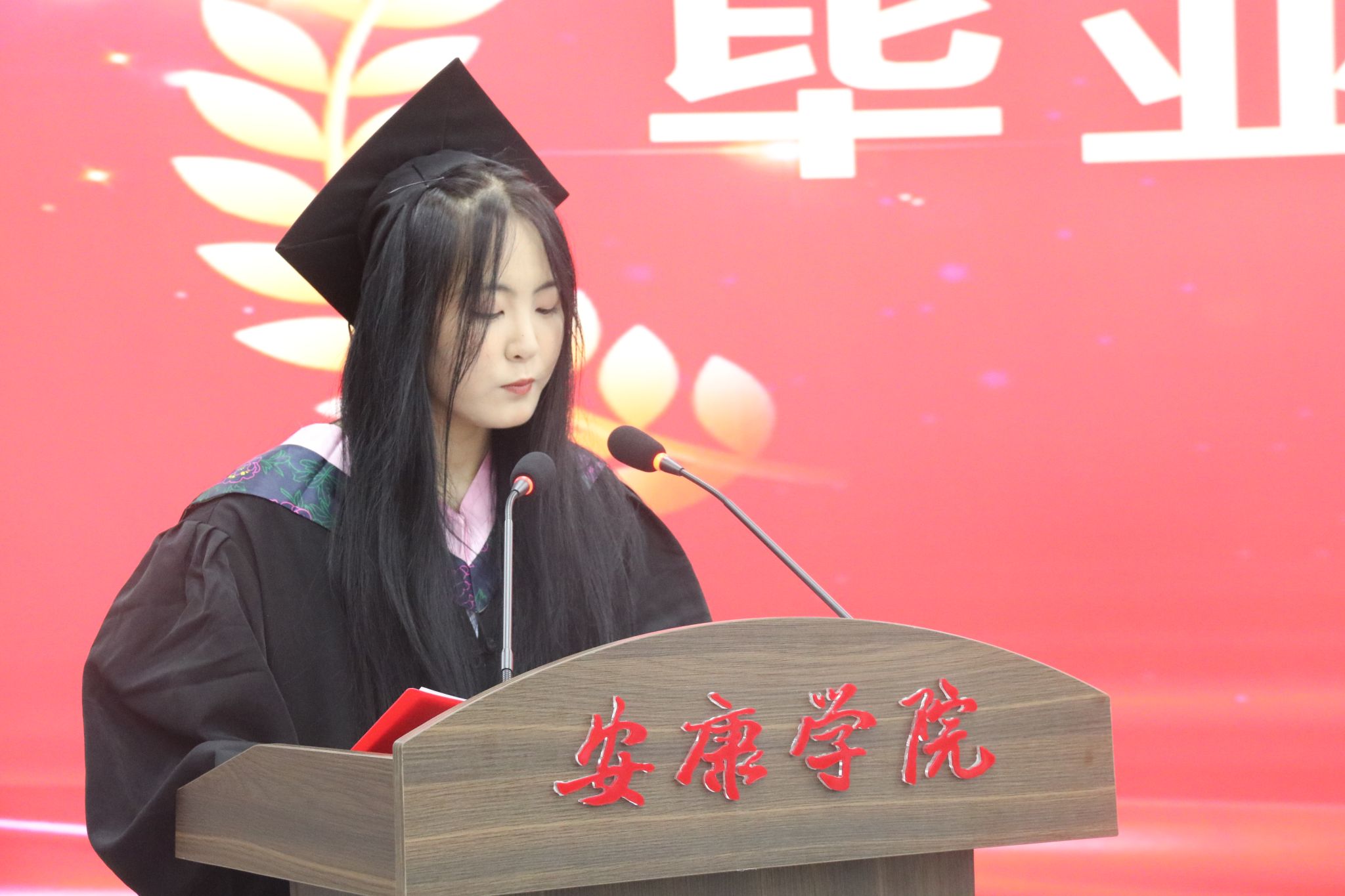 学生代表聂菲艳代表伟德国际victor·1946源自全体毕业生发言,她首先感谢学校四年来的悉心培养,向老师们表达了深深的敬意,并承诺始终秉承伟德国际victor1946“笃学、尚行、励志、创新”的校训,以勇敢和坚强的姿态迈向未来,在时代的浪潮中不负韶华,砥砺前行。