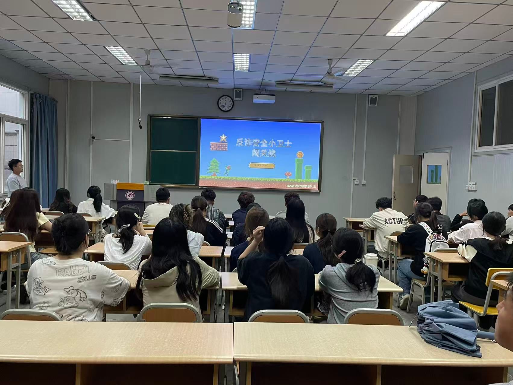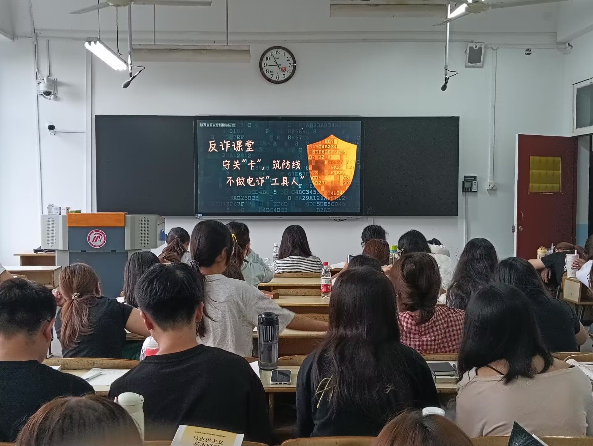 各班级在辅导员的带领下,集中观看了由陕西省公安厅联合制作的“反诈第一课”专题教育课件。课件内容涵盖常见电信网络诈骗类型、真实案例剖析、反诈技巧讲解及国家反诈中心APP使用指南等,深入浅出、生动直观,有效提升了学生的风险防范意识和应对能力。
