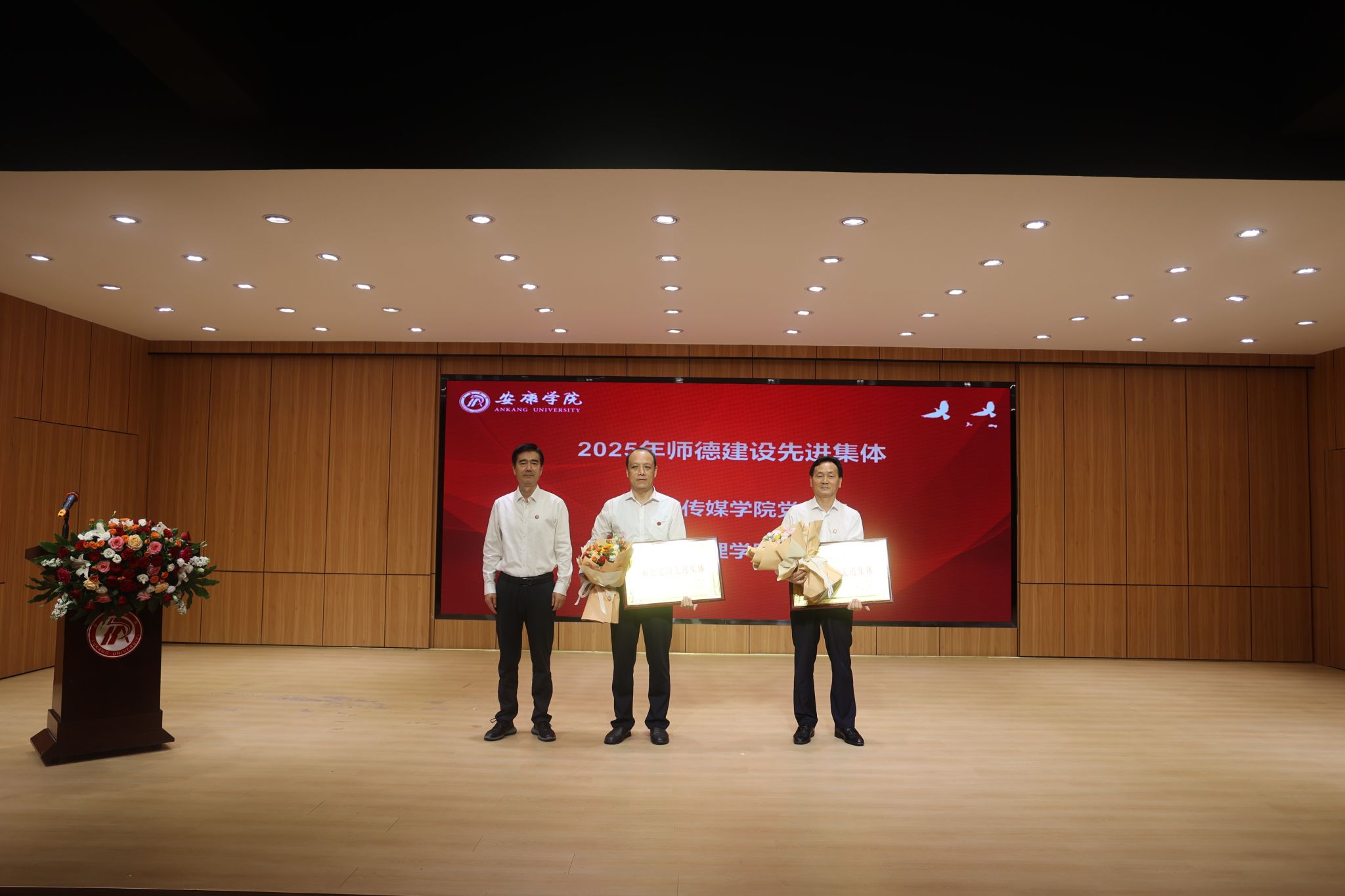 9月10日下午,我校在江北校区召开庆祝第41个教师节暨表彰大会,以“以教育家精神铸魂强师,谱写教育强国建设华章”为主题,通过表彰先进典型、凝聚奋进力量、传承教育誓言,向全校教职工致以节日的问候与崇高敬意。学校领导班子在校成员,学科首席专家代表,正高职称专业技术人员代表,各二级学院院长、党总支书记、各职能部门负责人,2025年新进教师及受表彰个人、团体代表参会。党委书记钟生海向全校教师致以节日问候并讲话,校长余劲主持会议。文传学院多名教师获得表彰奖励。