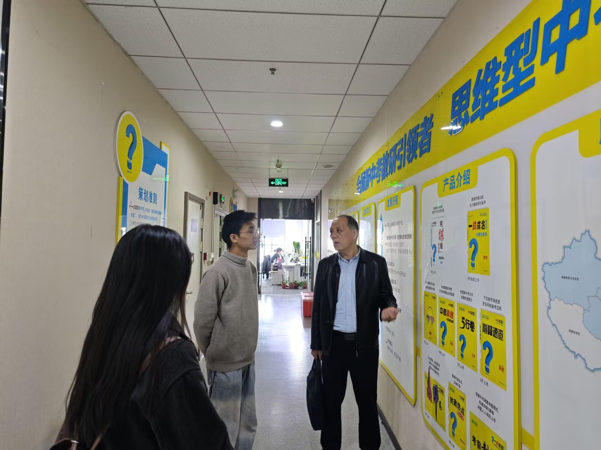 11月15日上午,文传学院一行访问粉笔陕西分校。陕西分校负责人高靖淳、综合运营中心负责人王旭,安康分部负责人何成征、市场运营杨旭东等参与交流。文传学院一行参观了企业办公区、教学区及文化展示区,了解其线上线下融合的智能培训模式。