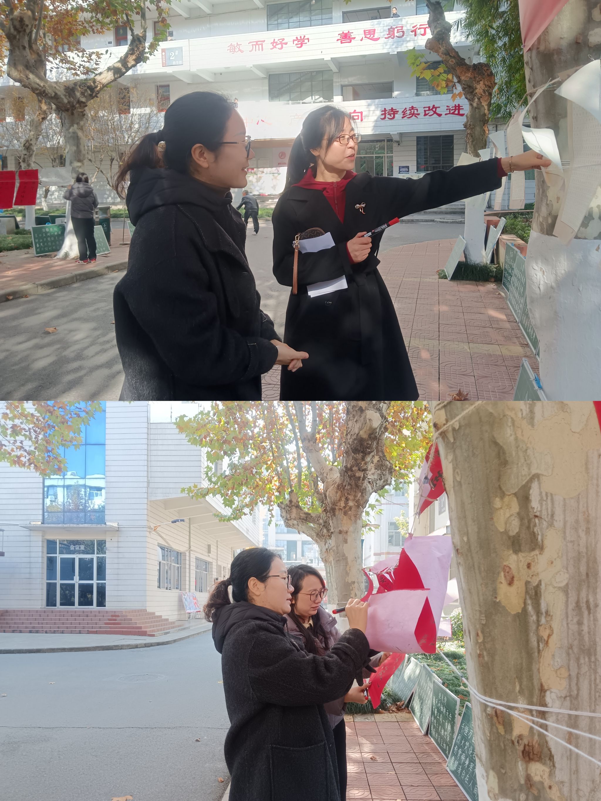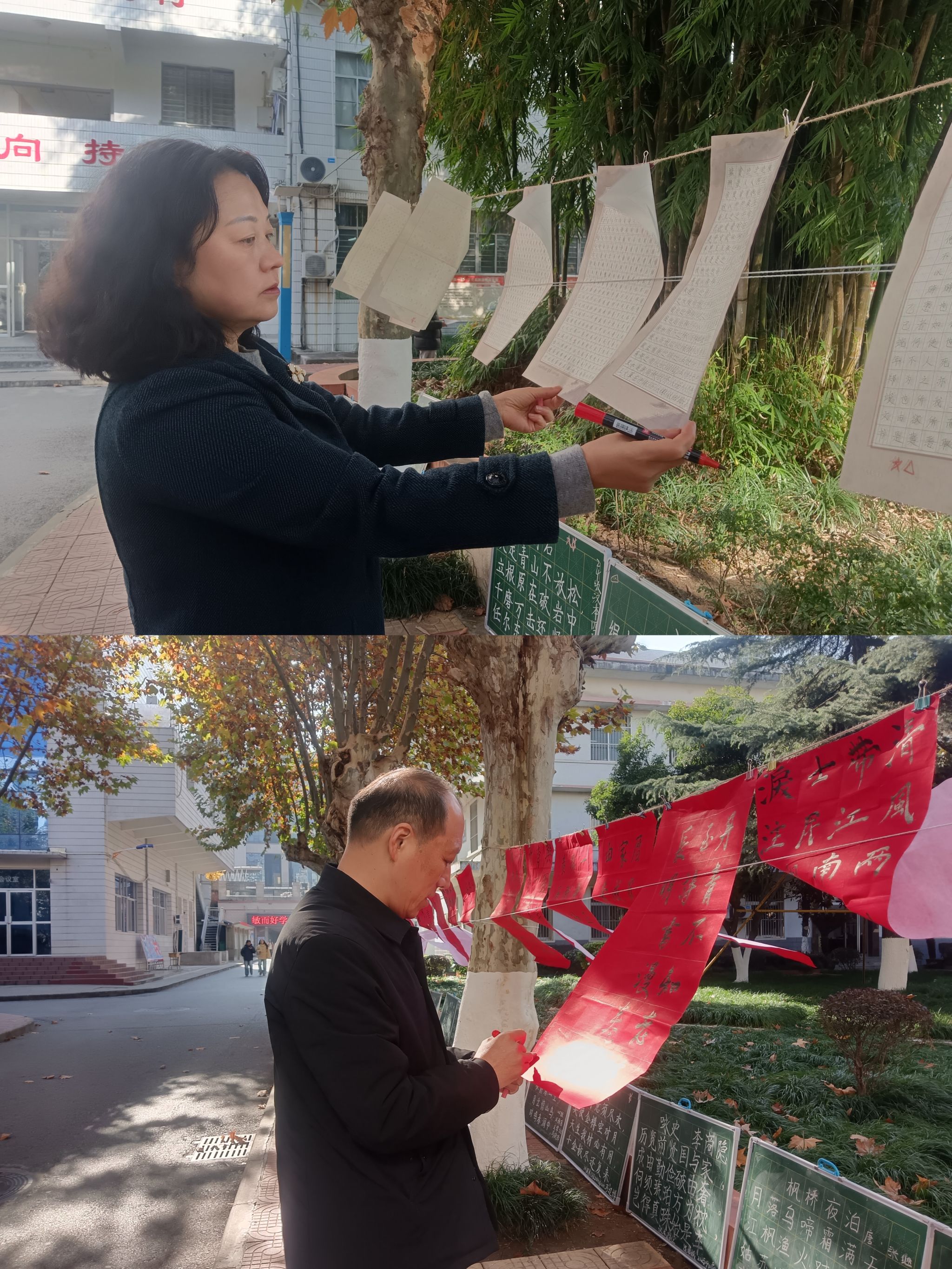 本次活动集中呈现了伟德国际victor·1946源自2024级、2025级学生在硬笔、毛笔、粉笔三类书写技能方面的训练成果。前期共征集参展作品280幅,经遴选后在江南校区2号楼前林荫道两侧展出180幅。作品内容紧扣廉洁主题,涵盖廉政格言、正气诗词、传统家训与学风建设相关内容,整体书写工整、布局严谨、风格鲜明,充分展现了师范生扎实的书写功底与清正自律的精神风貌。