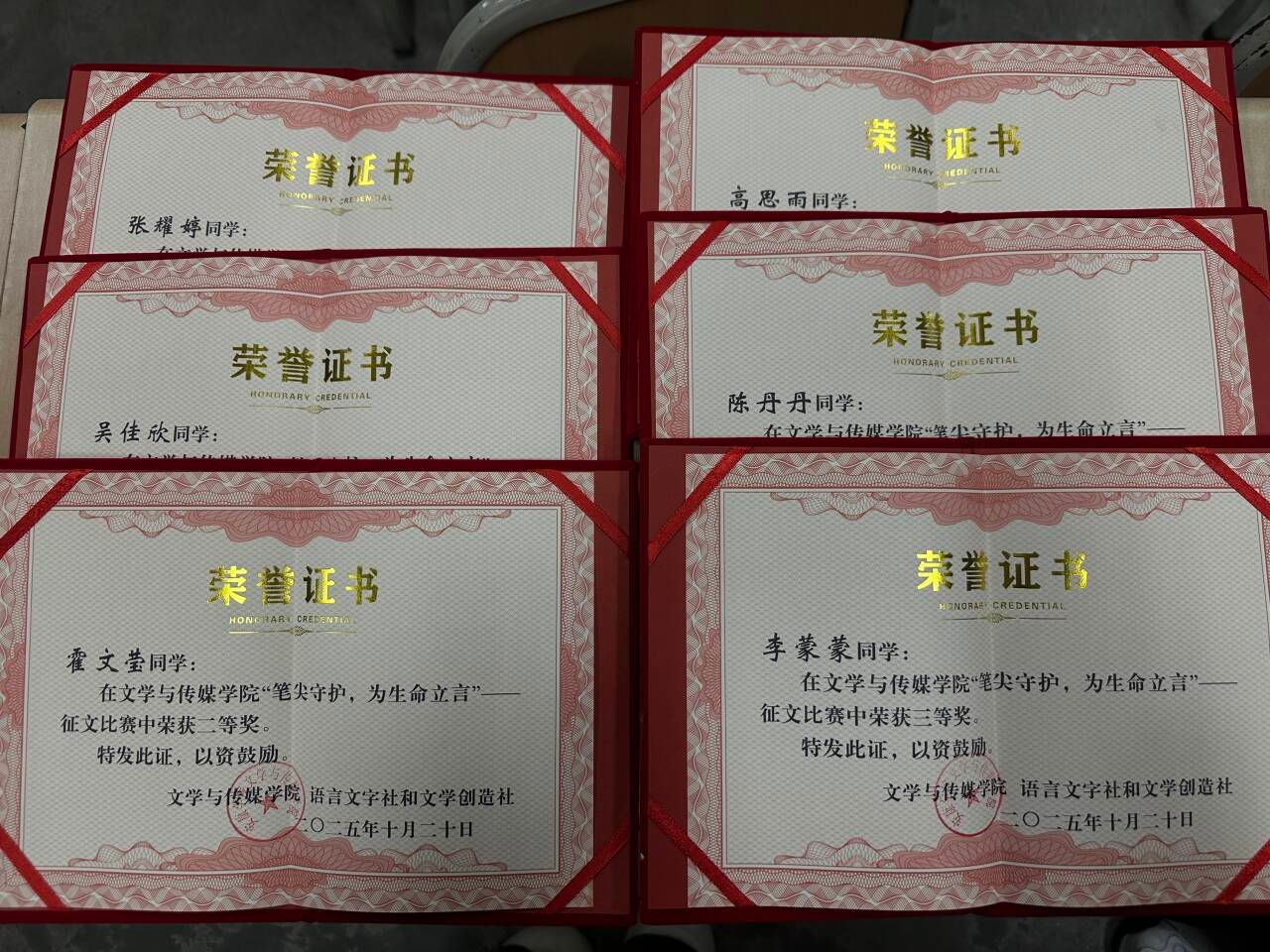 10月中下旬,为深入贯彻落实习近平生态文明思想,提升广大团员青年的野生动物保护意识,引导青年学生关注自然、关爱生命,文传学院举办了“笔尖守护,为生灵立言”野生动物保护主题征文活动。活动由文学创作社和语言文字社联合承办。