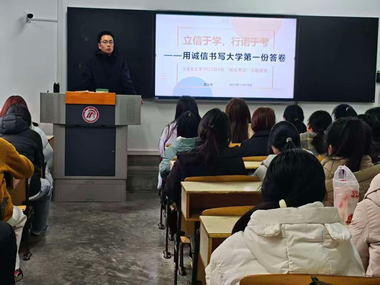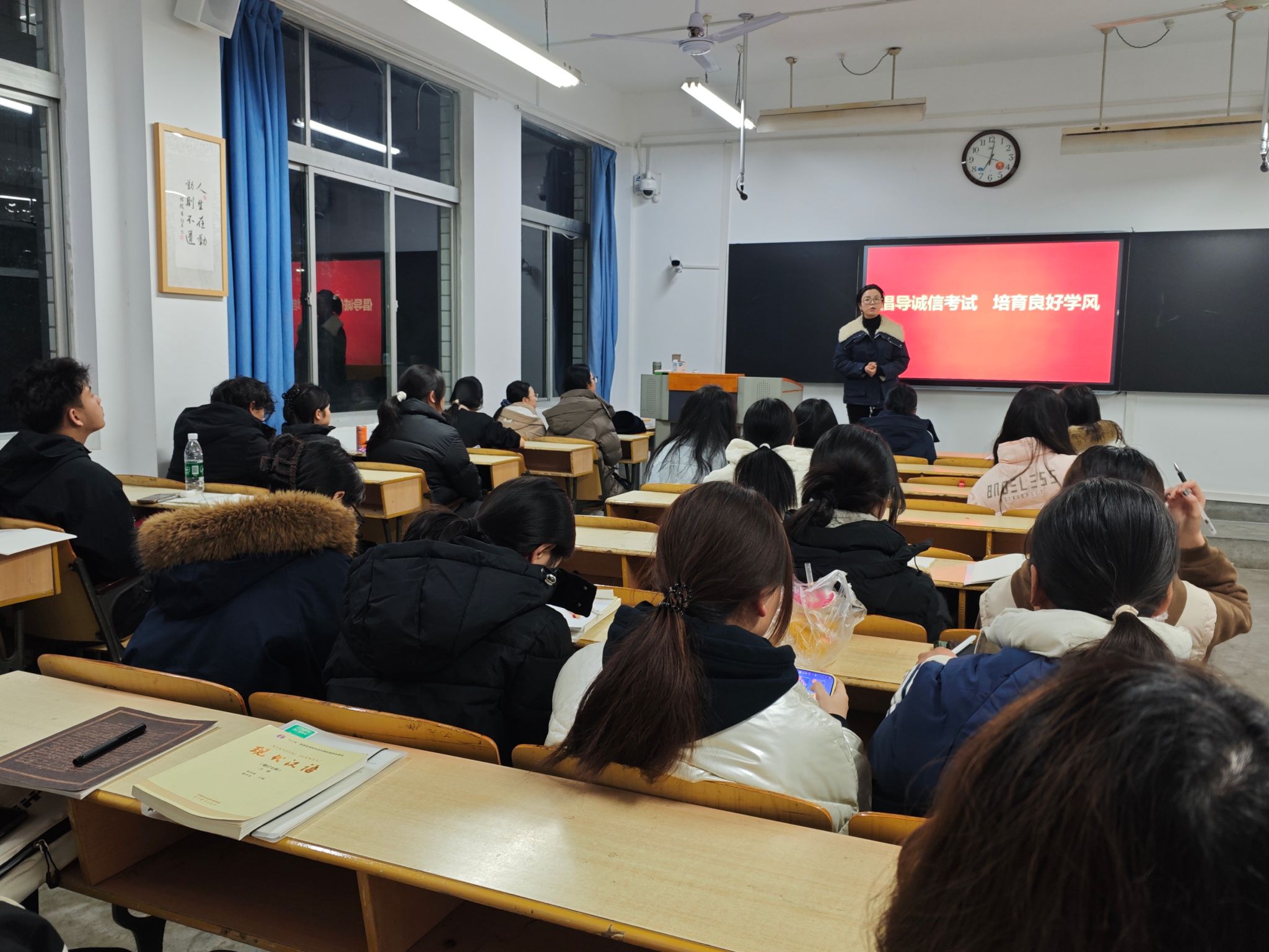 班会上,辅导员和班主任带领同学们集中学习了《伟德国际victor1946学生手册》《伟德国际victor1946学士学位授予条例(修订)》等相关管理规定,重点解读了考试违纪行为的认定标准及相应处理办法,强调诚信应考是学生基本行为规范,也是立身立学的重要准则。通过典型案例分析,引导学生深刻认识考试作弊的危害,牢固树立“诚信为本、守纪为荣”的意识。