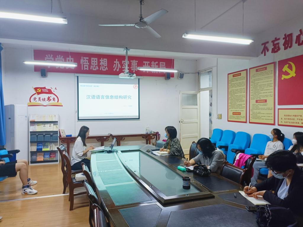 4月27日晚19点30分,文传学院语言学学科组在2307会议室举办了第五届“学术沙龙”活动周第三场沙龙活动。本场沙龙由盘珊君老师主讲,主题是“汉语语言信息结构研究”。学科组杨运庚、赵桃、李婷、周海霞几位老师和部分学生参加了活动和研讨。