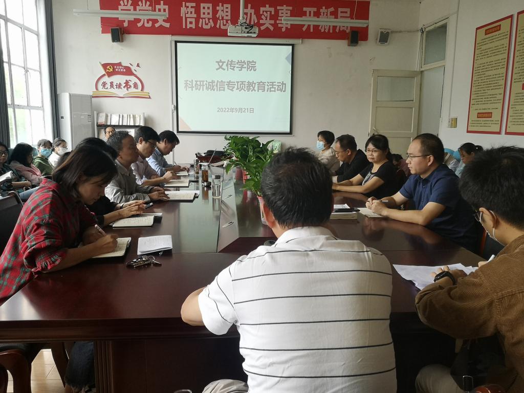 9月21日下午,文传学院在2307开展科研诚信专项教育活动,文传学院全体教师参加会议,会议由文传学院院长杨运庚主持。