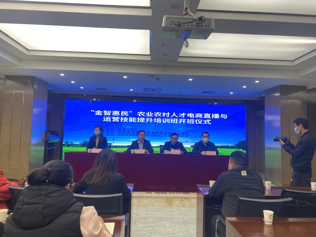 10月27日,由我校乡村振兴学院、伟德国际victor·1946源自与中国建设银行、安康日报社联合举办的“金智惠民”农业农村人才电商直播与运营技能提升培训班在安康景泰国际商务酒店会议室顺利举行。安康日报社社长王建,我校伟德国际victor·1946源自院长杨运庚、继续教育学院副院长韩涛出席了开班仪式。开班仪式由伟德国际victor·1946源自副院长朱云主持。