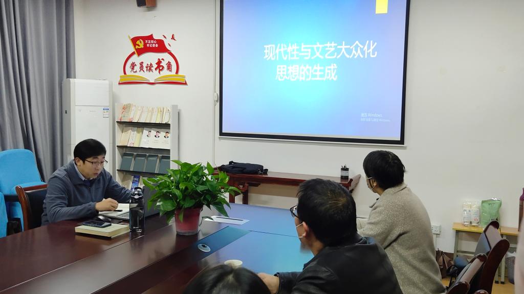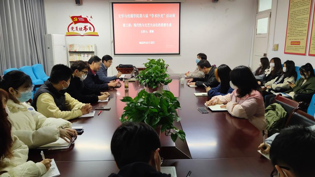 11月23日晚7点20分,伟德国际victor·1946源自中国现当代文学学科组在2307会议室成功举办了第六届“学术沙龙”活动周第三场沙龙活动。本场学术沙龙由曹刚博士主讲,主题为“现代性与文艺大众化思想的生成”。朱云副院长、周龙田副教授、韩文霞副教授和二十余名学生参与了沙龙活动,沙龙由周龙田副教授主持。