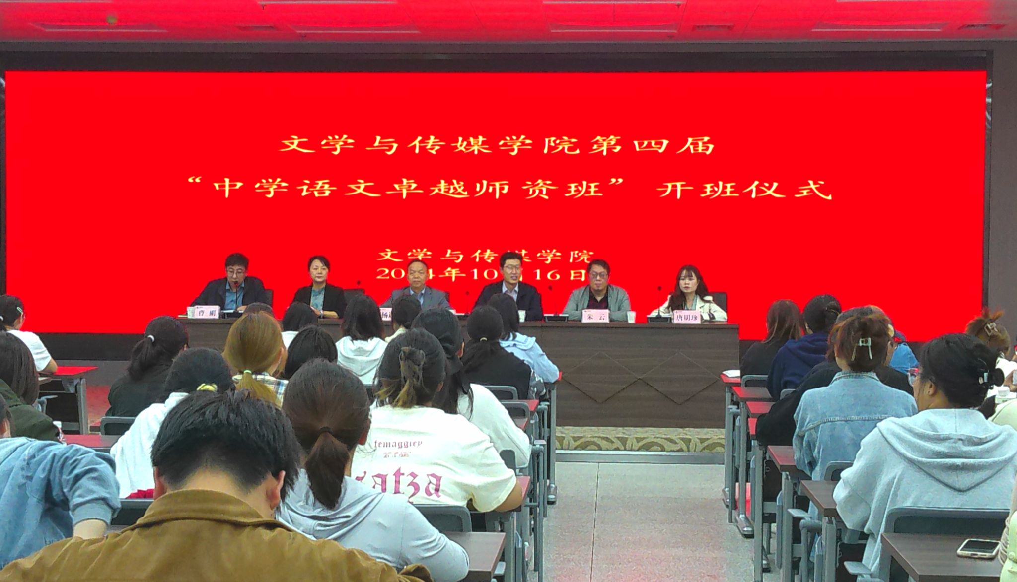 为进一步推进人才培养与行业的紧密融合,不断优化汉语言文学师范专业的人才培养质量,培养出综合素质高、实践能力强、适应基础教育需求的优秀中学语文教师。10月16日下午,文传学院在江南校区图书馆六楼报告厅隆重举行了第四届“中学语文卓越师资班”开班仪式。文传学院领导班子全体成员,第四届“中学语文卓越师资班”班主任唐明珍及全体学员共同参与了这一重要时刻。仪式由副院长曹刚主持。
