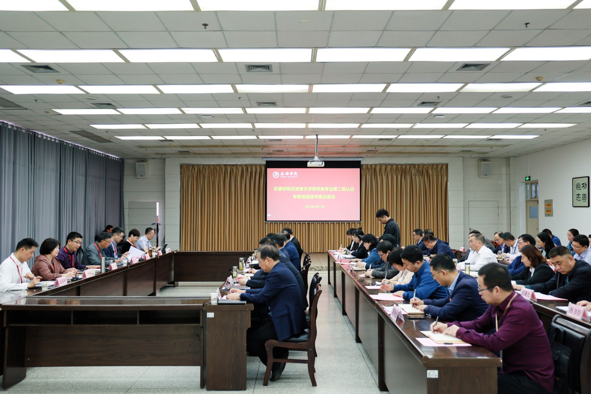 19日上午,专家组意见反馈会在江北校区召开。专家组全体成员,陕西省教育厅教师工作处副处长周淼,陕西省教育考试与评价研究会秘书长王恒超,学校全体校领导、相关职能部门负责人、文传学院领导班子成员及师范专业所在二级学院院长、教学副院长、专业负责人参加了会议。